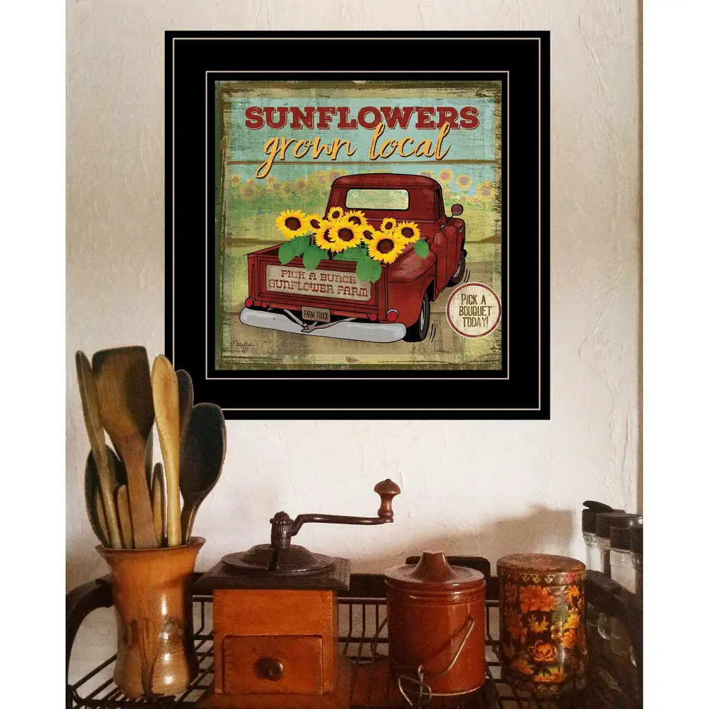 This sunflowers from the farm 4 black framed print wall art will add a beautiful decorative accent to your decor. This print is a visual artistic expression that allows you to decorate your space in style. Reproduced for you on paper, this hanging decorative accent will be a trendy and fashionable way to dress your walls. Adding this hanging wall art to your space to make your room feel more finished and attractive. Instantly liven up your space with this art that brings color and dimension to your walls. 15" H x 15" W x 1" D
