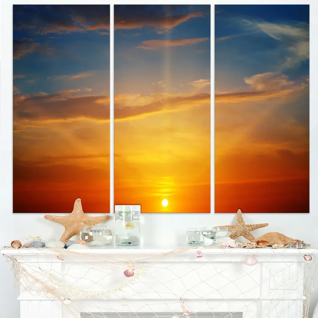 "Sunlight In Sky Above Horizon" Metal Wall Art, 3 Panels, 36"x28"