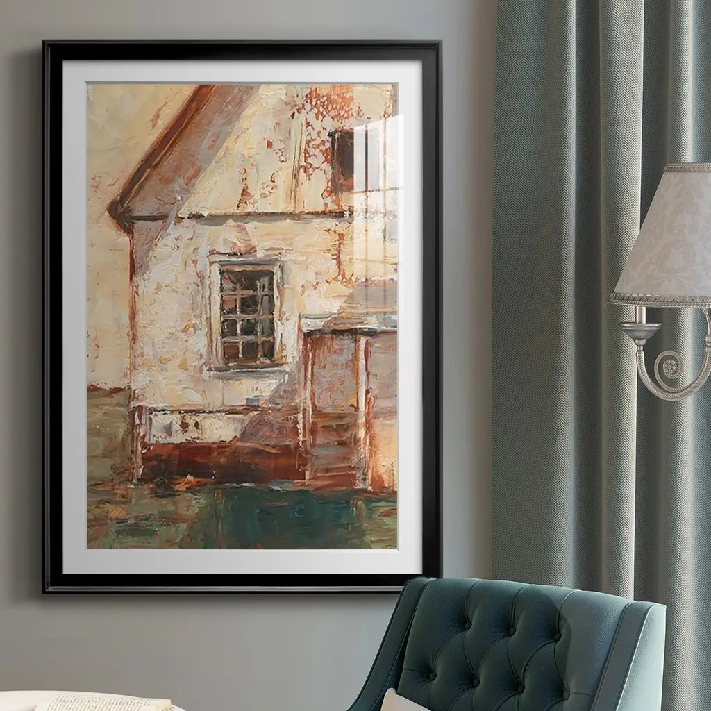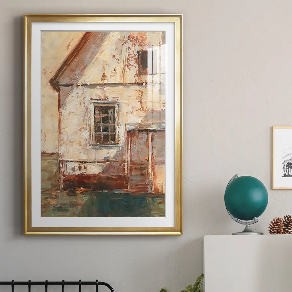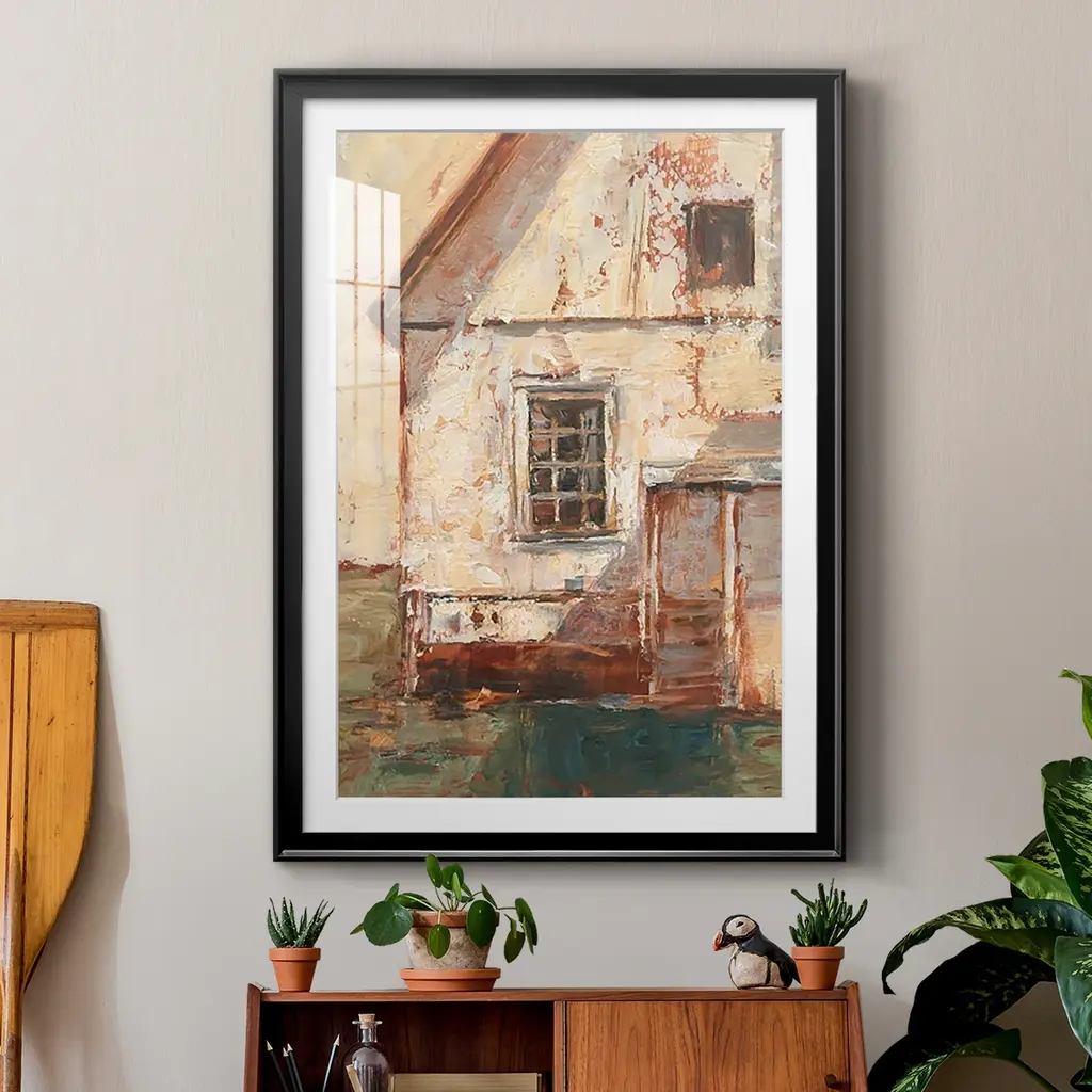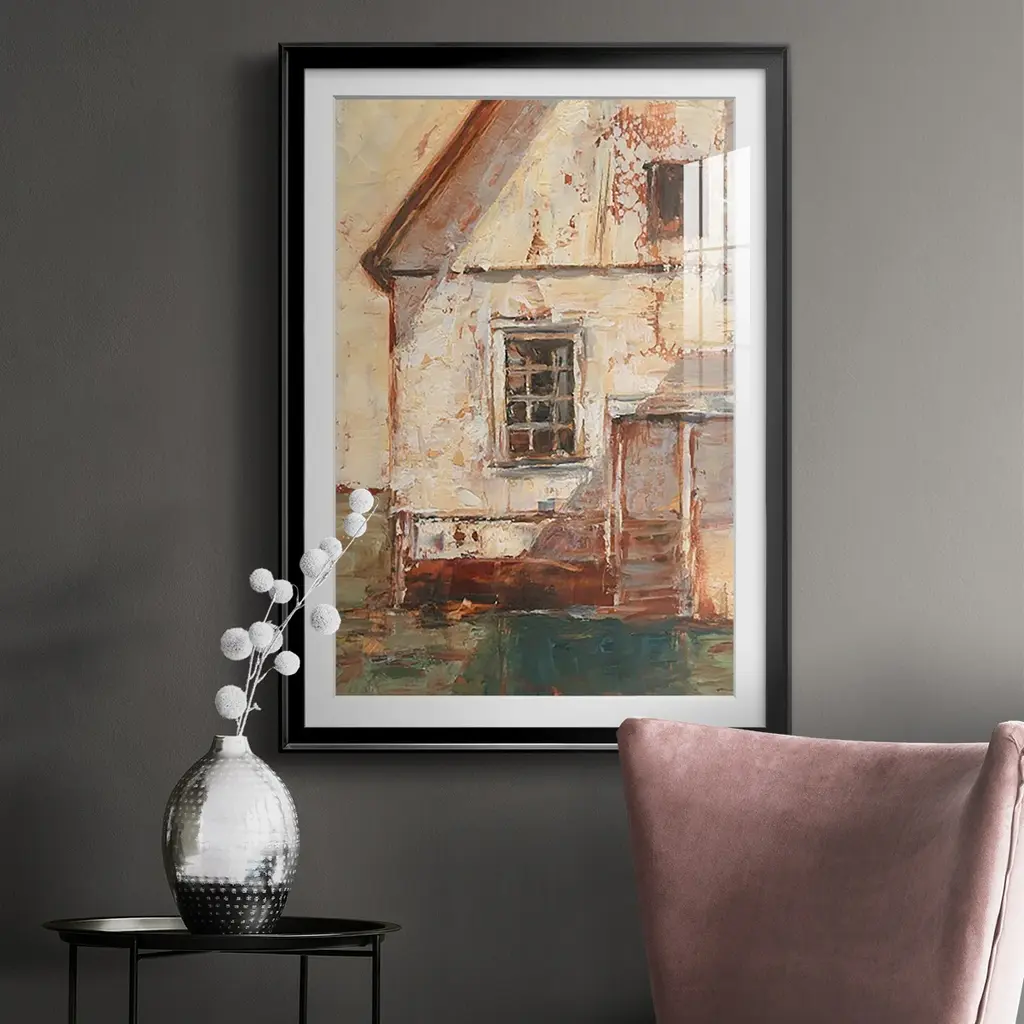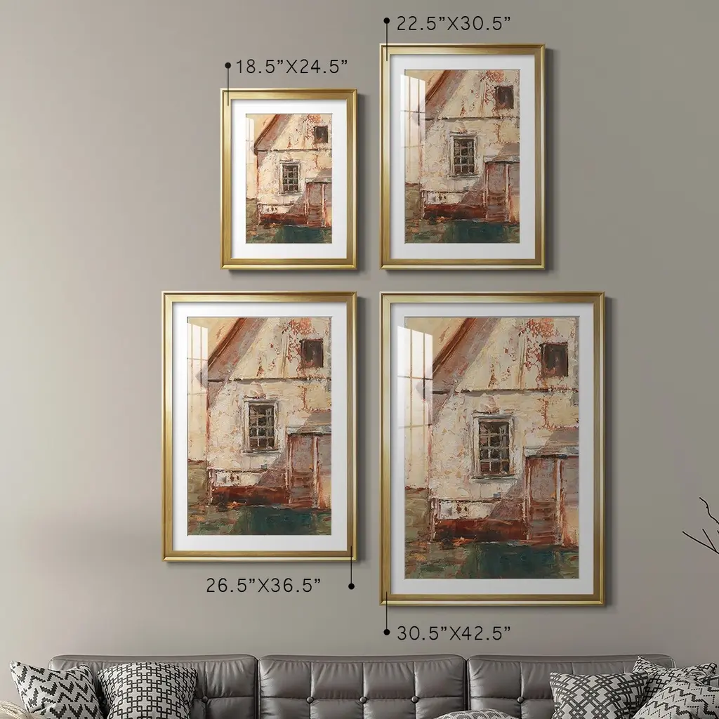 Sunlit Barn II Premium Framed Print - Ready to Hang A Premium Framed Print created to last. Framed in distressed wood and available in an array of sizes and colors Featuring a beveled a solid wood stretcher bar, each piece comes ready to hand 4 SIZES AVAILABLE 30.5''X42.5'' - Overall Size 26.5'X36.5'' - Overall Size 22.5''x30.5'' - Overall Size 18.5''x24.5'' - Overall Size Each piece is made to order. Each piece comes with hanging hardware. Made in the USA Ready to Hang Giclee Paper Print Acrylic Glass Beveled Matt Board