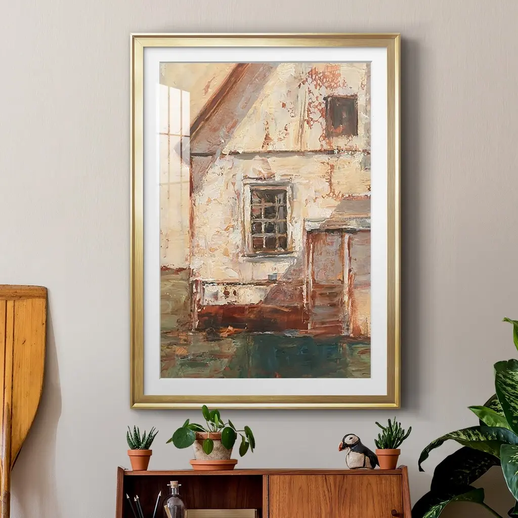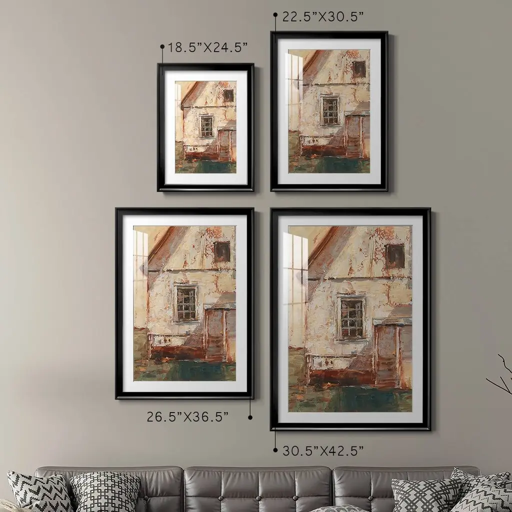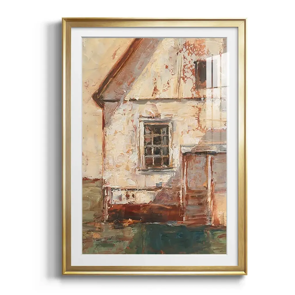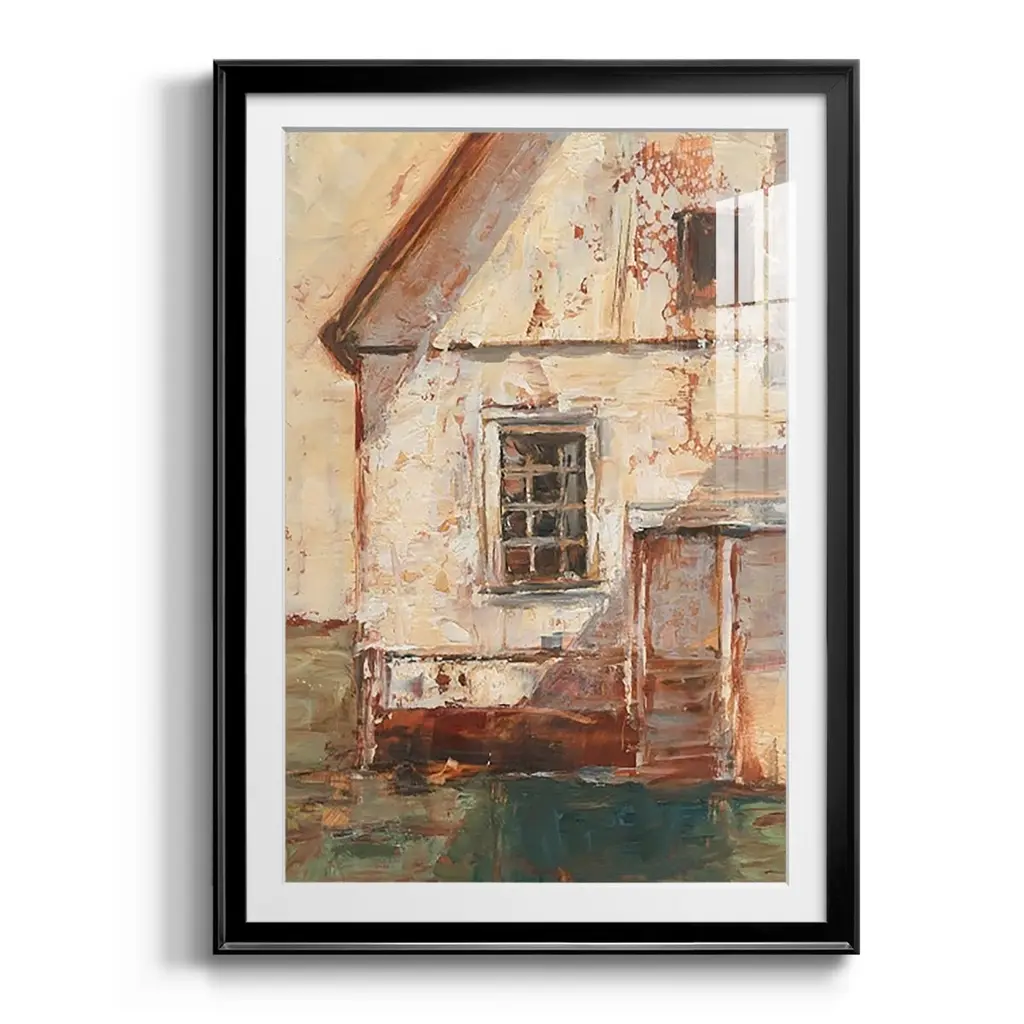 Sunlit Barn II Premium Framed Print - Ready to Hang A Premium Framed Print created to last. Framed in distressed wood and available in an array of sizes and colors Featuring a beveled a solid wood stretcher bar, each piece comes ready to hand 4 SIZES AVAILABLE 30.5''X42.5'' - Overall Size 26.5'X36.5'' - Overall Size 22.5''x30.5'' - Overall Size 18.5''x24.5'' - Overall Size Each piece is made to order. Each piece comes with hanging hardware. Made in the USA Ready to Hang Giclee Paper Print Acrylic Glass Beveled Matt Board