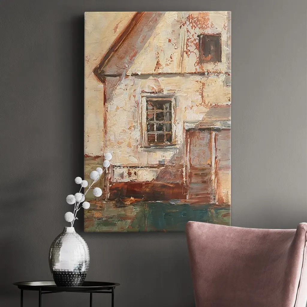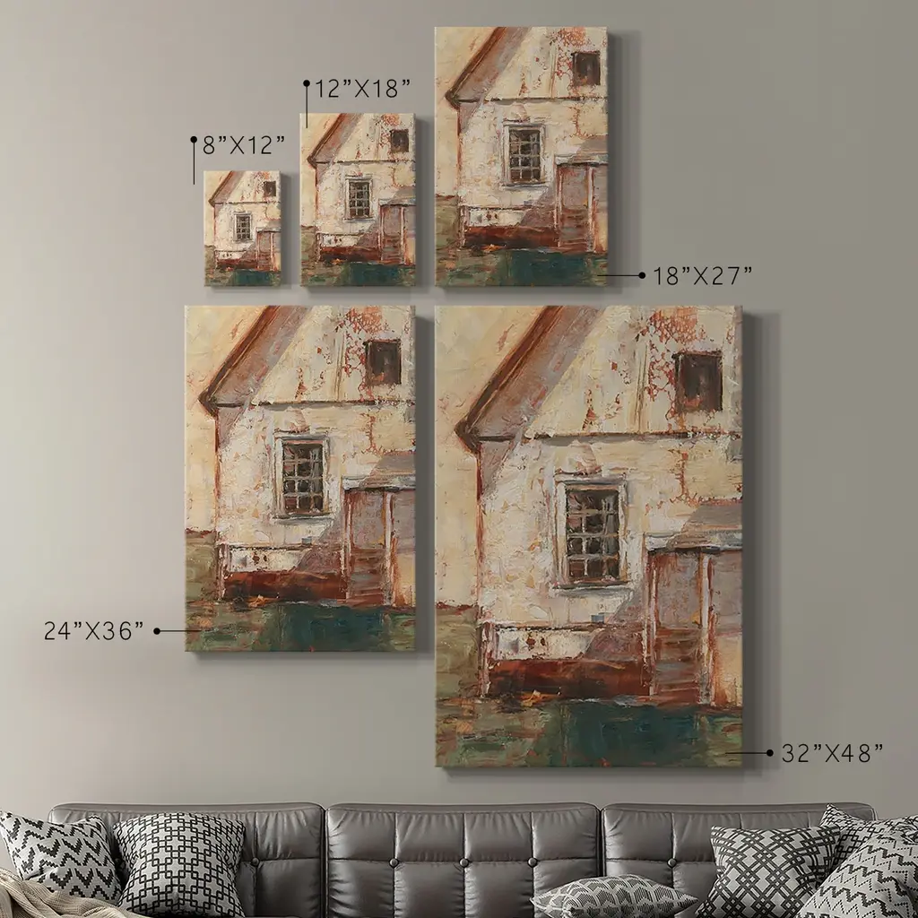 Sunlit Barn II Premium Gallery Wrapped Canvas - Ready to Hang A premium hand stretched gallery wrapped canvas print created to last. Featuring a beveled a solid wood stretcher bar, each piece comes ready to hand 6 SIZES AVAILABLE 8''X12'' - Overall Size 12''X18'' - Overall Size 18''X27'' - Overall Size 24''x36'' - Overall Size 32''x48'' - Overall Size 40''x60'' - Overall Size Each piece is made to order. Built to Last Each piece comes ready to hang Solid wood stretcher Fade and Water resistant Made domestically