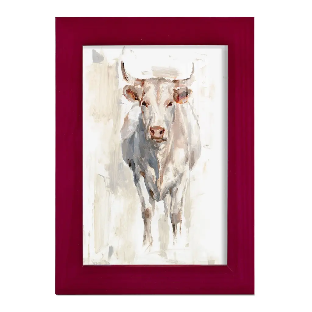 Sunlit Cows II -EZ SWITCH Framed Print w/glass-Cherry Red A delightful, framed print. Featuring a solid wood frame with real wood glass. This premium print is giclee quality. In addition, every frame features a removable back and table top stand. This allows you to change your art in the future or to just stand the art on a table for a new look. We are sure you'll enjoy our new series of EZ SWITCH Framed Art. Solid Wood Frame Real Glass Removable / Replaceable Art Built in Tabletop Stand Sizes range from 4x6 up to 12x15 - buy just one or pair them up as sets as you see fit.