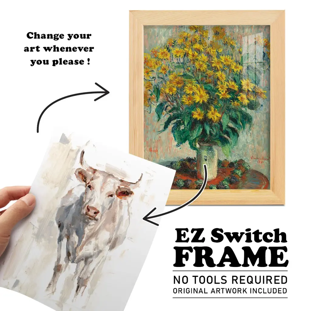 Sunlit Cows II -EZ SWITCH Framed Print w/glass-Cherry Red A delightful, framed print. Featuring a solid wood frame with real wood glass. This premium print is giclee quality. In addition, every frame features a removable back and table top stand. This allows you to change your art in the future or to just stand the art on a table for a new look. We are sure you'll enjoy our new series of EZ SWITCH Framed Art. Solid Wood Frame Real Glass Removable / Replaceable Art Built in Tabletop Stand Sizes range from 4x6 up to 12x15 - buy just one or pair them up as sets as you see fit.
