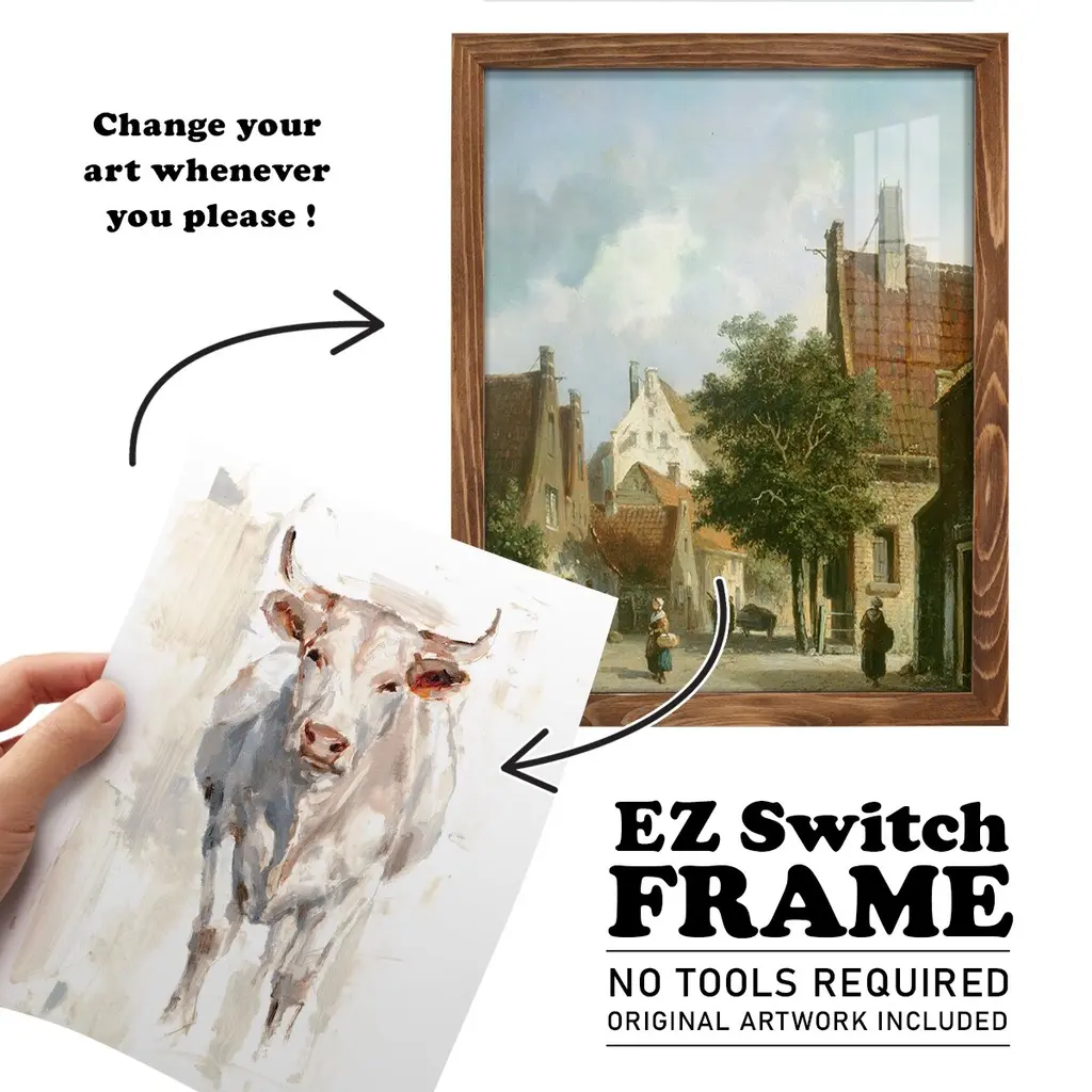 Sunlit Cows II -EZ SWITCH Framed Print w/glass-Cherry Red A delightful, framed print. Featuring a solid wood frame with real wood glass. This premium print is giclee quality. In addition, every frame features a removable back and table top stand. This allows you to change your art in the future or to just stand the art on a table for a new look. We are sure you'll enjoy our new series of EZ SWITCH Framed Art. Solid Wood Frame Real Glass Removable / Replaceable Art Built in Tabletop Stand Sizes range from 4x6 up to 12x15 - buy just one or pair them up as sets as you see fit.