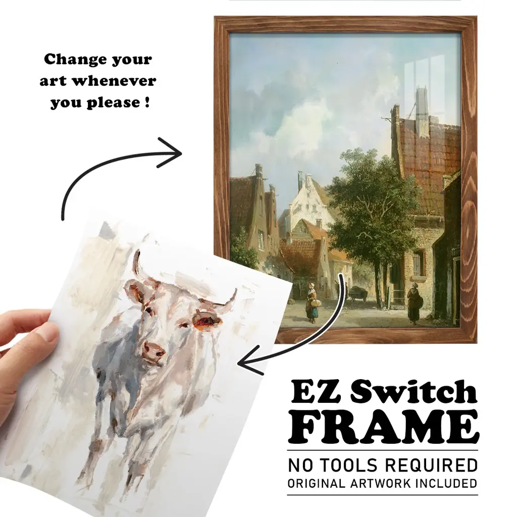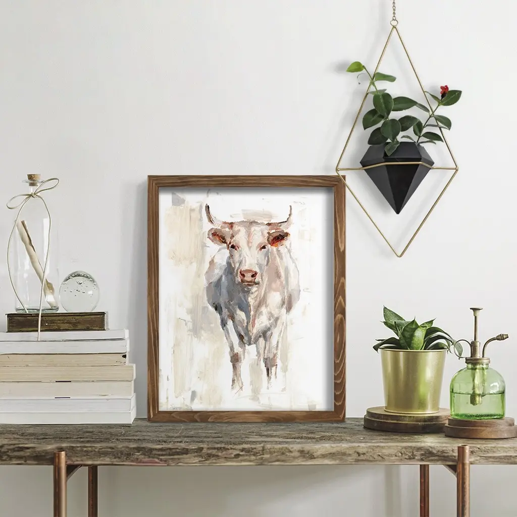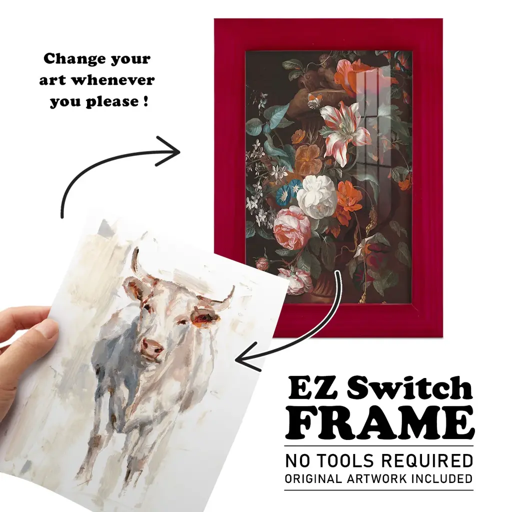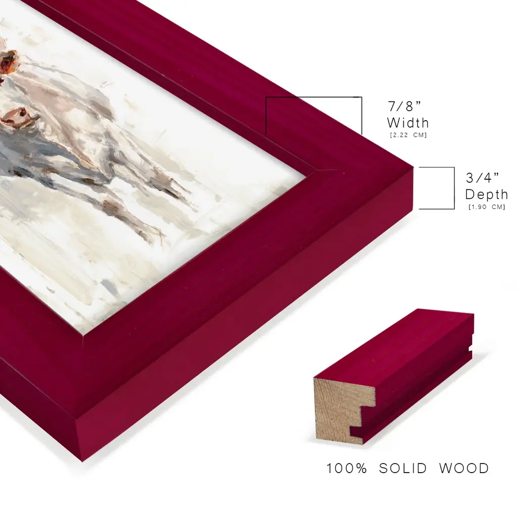 Sunlit Cows II -EZ SWITCH Framed Print w/glass-Cherry Red A delightful, framed print. Featuring a solid wood frame with real wood glass. This premium print is giclee quality. In addition, every frame features a removable back and table top stand. This allows you to change your art in the future or to just stand the art on a table for a new look. We are sure you'll enjoy our new series of EZ SWITCH Framed Art. Solid Wood Frame Real Glass Removable / Replaceable Art Built in Tabletop Stand Sizes range from 4x6 up to 12x15 - buy just one or pair them up as sets as you see fit.