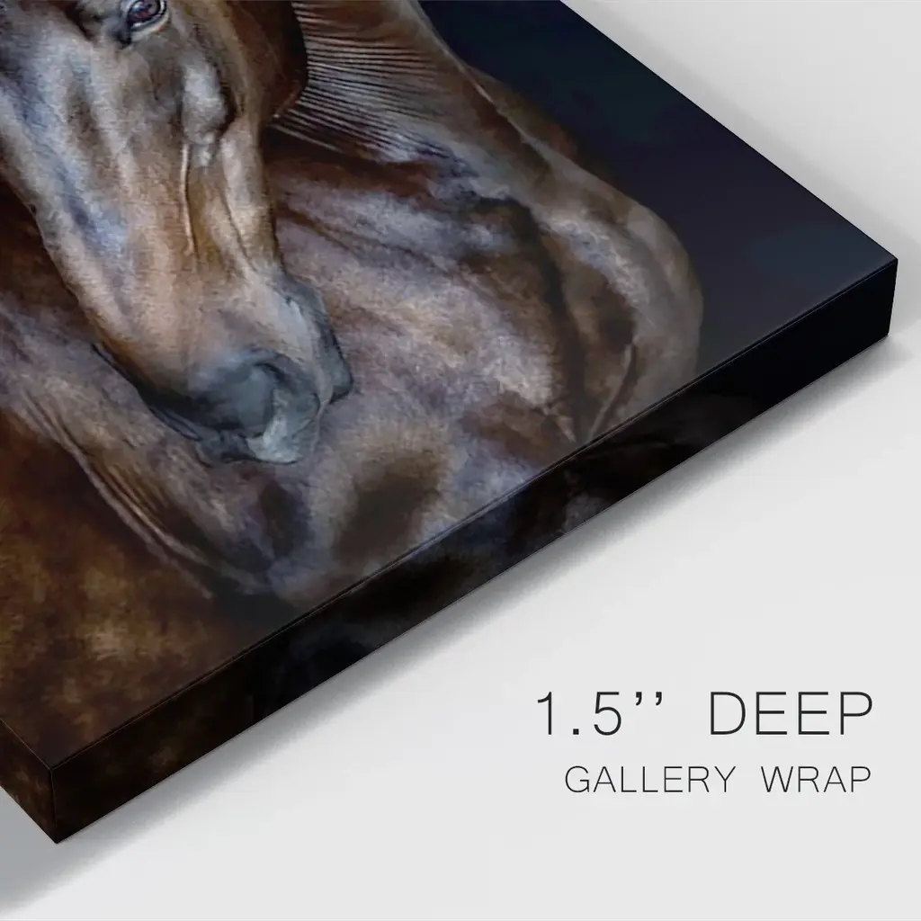 Sunlit Horses I Premium Gallery Wrapped Canvas - Ready to Hang A premium hand stretched gallery wrapped canvas print created to last. Featuring a beveled a solid wood stretcher bar, each piece comes ready to hand 6 SIZES AVAILABLE 8''X12'' - Overall Size 12''X18'' - Overall Size 18''X27'' - Overall Size 24''x36'' - Overall Size 32''x48'' - Overall Size 40''x60'' - Overall Size Each piece is made to order. Built to Last Each piece comes ready to hang Solid wood stretcher Fade and Water resistant Made domestically