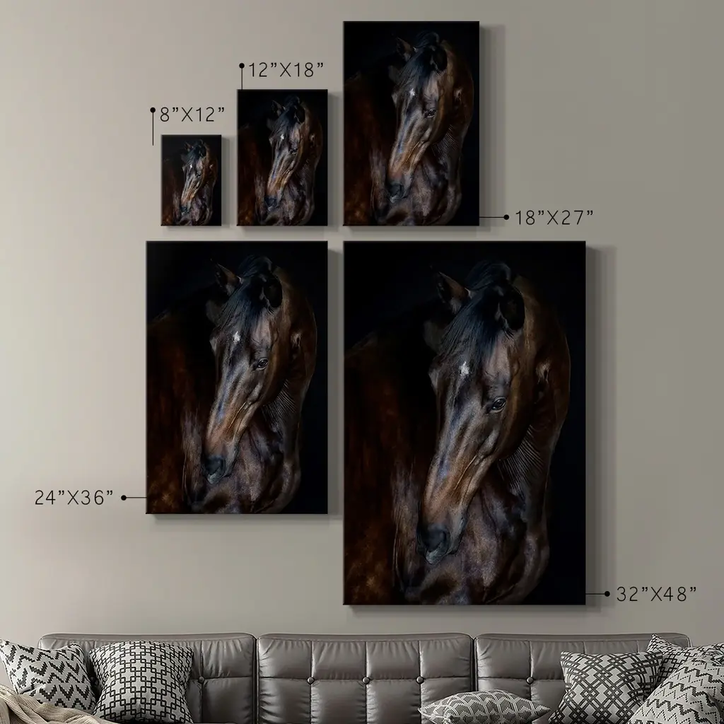 Sunlit Horses I Premium Gallery Wrapped Canvas - Ready to Hang A premium hand stretched gallery wrapped canvas print created to last. Featuring a beveled a solid wood stretcher bar, each piece comes ready to hand 6 SIZES AVAILABLE 8''X12'' - Overall Size 12''X18'' - Overall Size 18''X27'' - Overall Size 24''x36'' - Overall Size 32''x48'' - Overall Size 40''x60'' - Overall Size Each piece is made to order. Built to Last Each piece comes ready to hang Solid wood stretcher Fade and Water resistant Made domestically