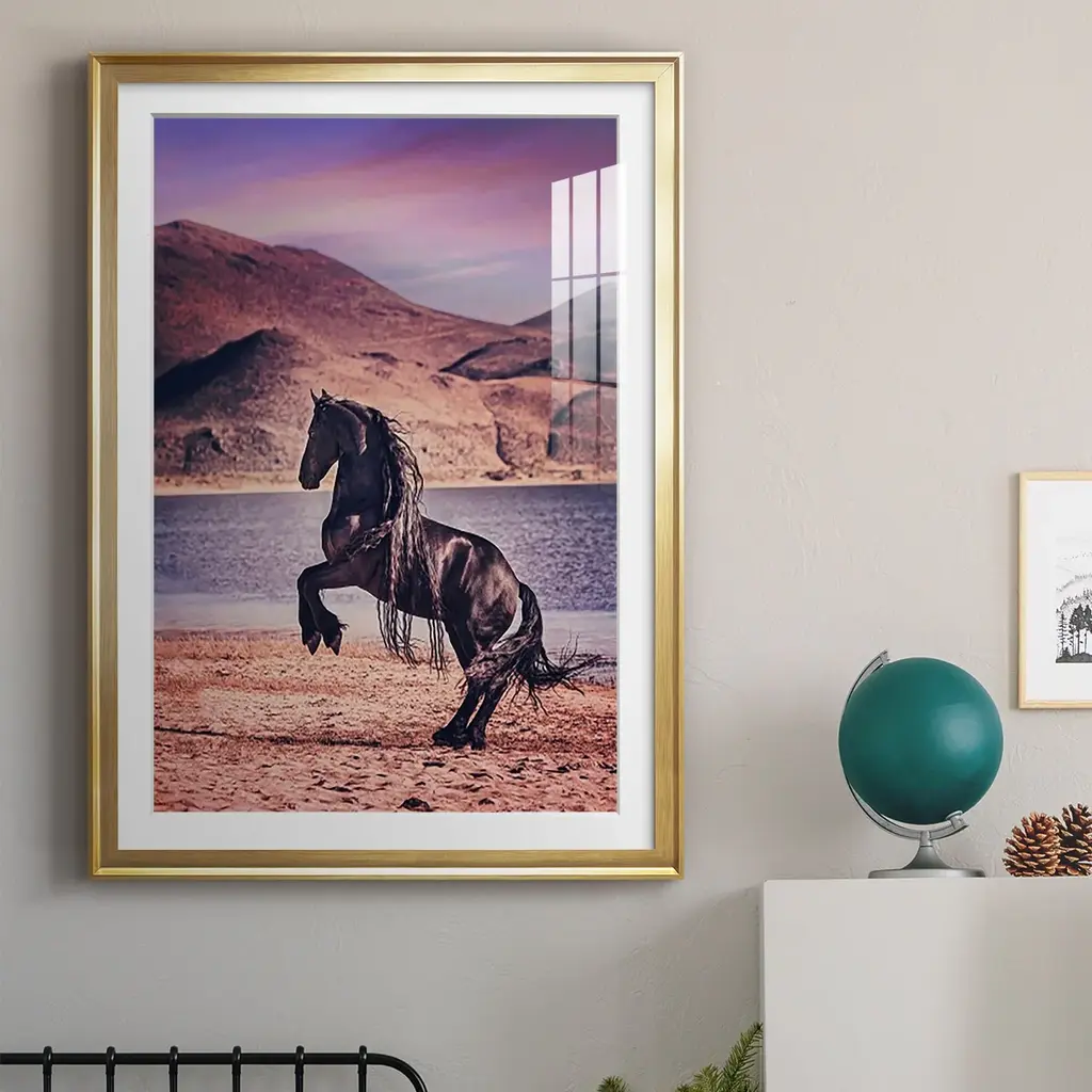 Sunlit Horses II Premium Framed Print - Ready to Hang A Premium Framed Print created to last. Framed in distressed wood and available in an array of sizes and colors Featuring a beveled a solid wood stretcher bar, each piece comes ready to hand 4 SIZES AVAILABLE 30.5''X42.5'' - Overall Size 26.5'X36.5'' - Overall Size 22.5''x30.5'' - Overall Size 18.5''x24.5'' - Overall Size Each piece is made to order. Each piece comes with hanging hardware. Made in the USA Ready to Hang Giclee Paper Print Acrylic Glass Beveled Matt Board