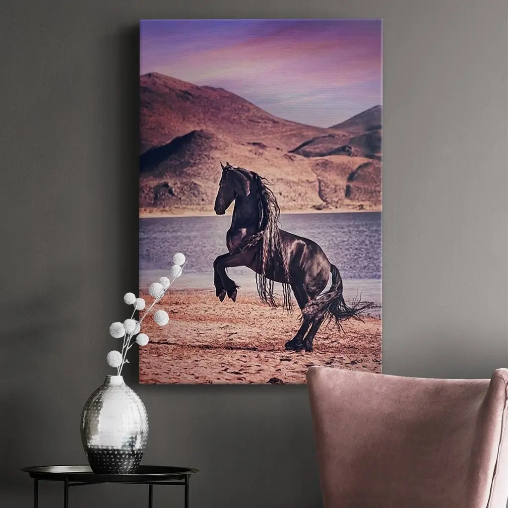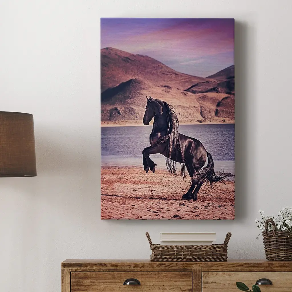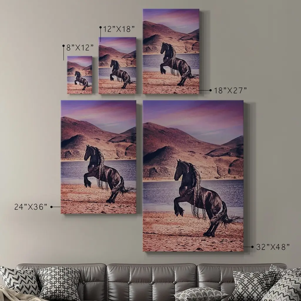 Sunlit Horses II Premium Gallery Wrapped Canvas - Ready to Hang A premium hand stretched gallery wrapped canvas print created to last. Featuring a beveled a solid wood stretcher bar, each piece comes ready to hand 6 SIZES AVAILABLE 8''X12'' - Overall Size 12''X18'' - Overall Size 18''X27'' - Overall Size 24''x36'' - Overall Size 32''x48'' - Overall Size 40''x60'' - Overall Size Each piece is made to order. Built to Last Each piece comes ready to hang Solid wood stretcher Fade and Water resistant Made domestically