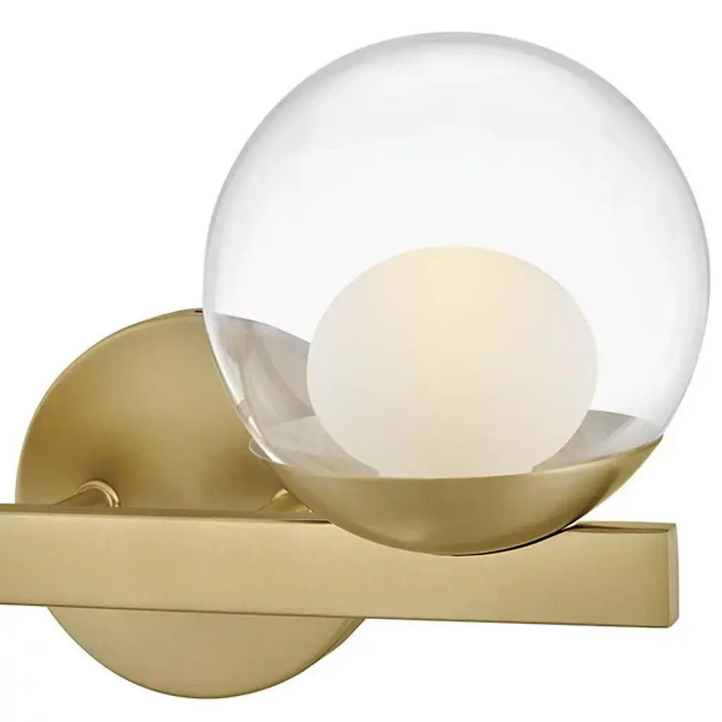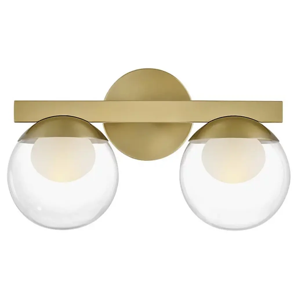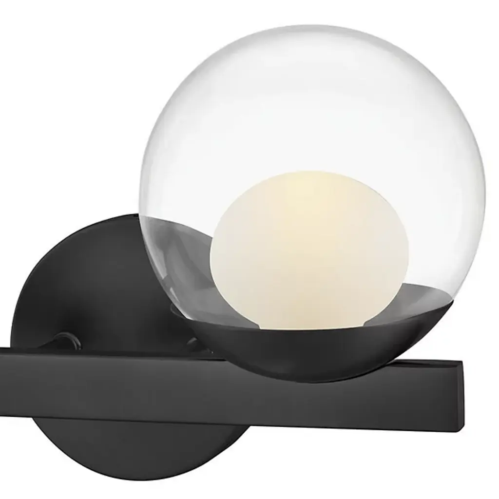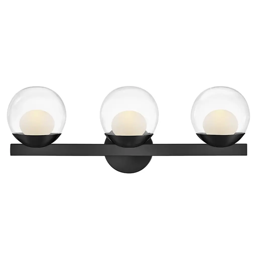 The Sunni Vanity Light from Hinkley brings a thoughtful balance of clean lines and soft, ephemeral forms to bathroom settings. Anchored by a round wall plate, a horizontal steel bar supports damp-rated lighting, each lamp nested inside a metal dish and surrounded by a frosted inner shade. A larger, clear glass globe encases the inner elements, delivering a warm, diffused glow while adding refined character and a welcome touch of modern refinement to its surroundings.