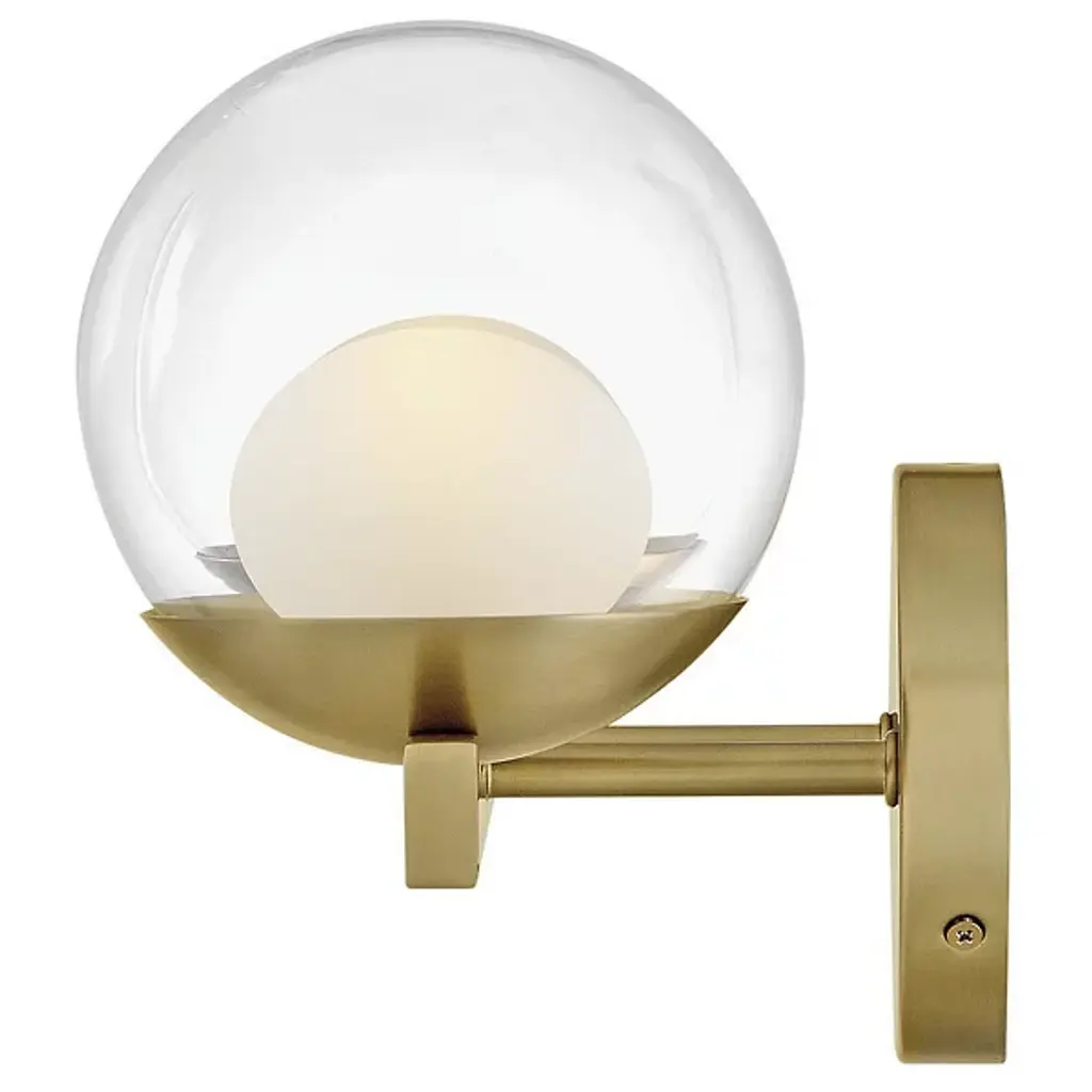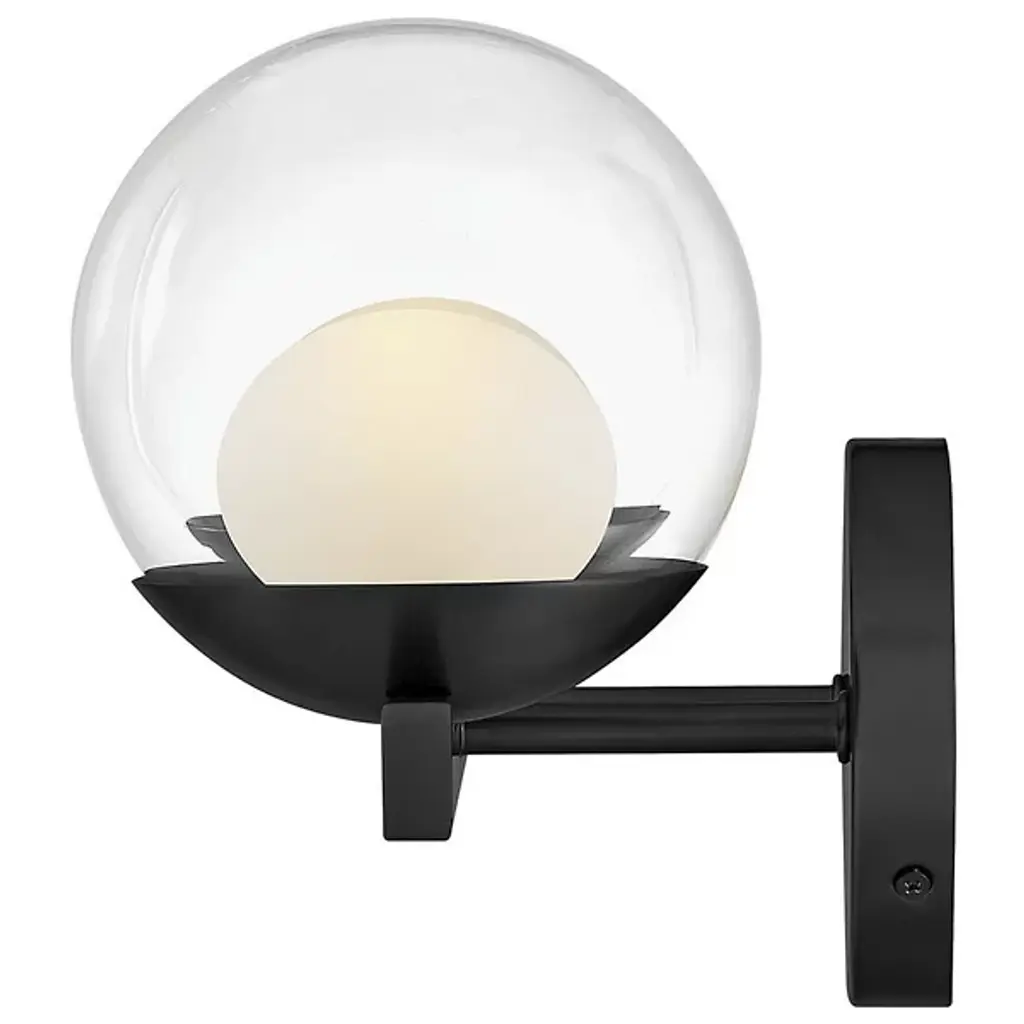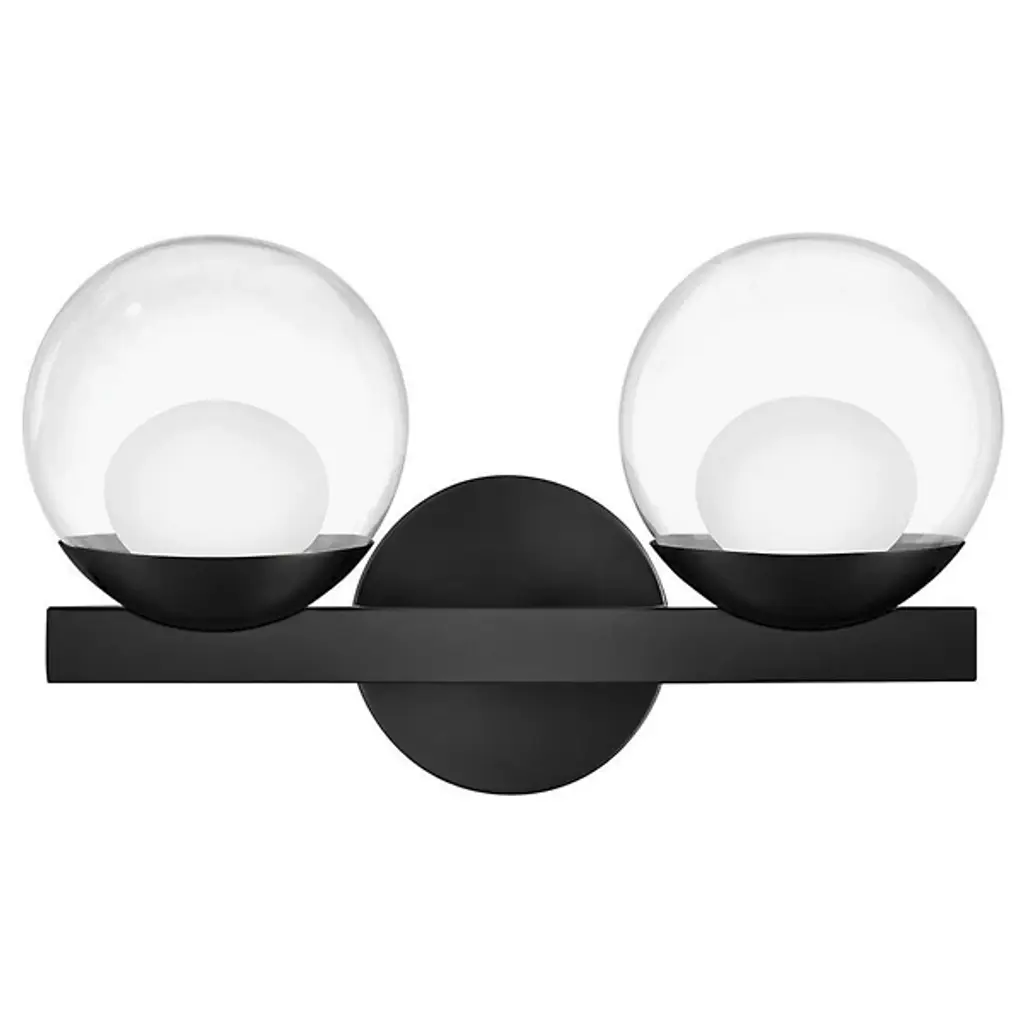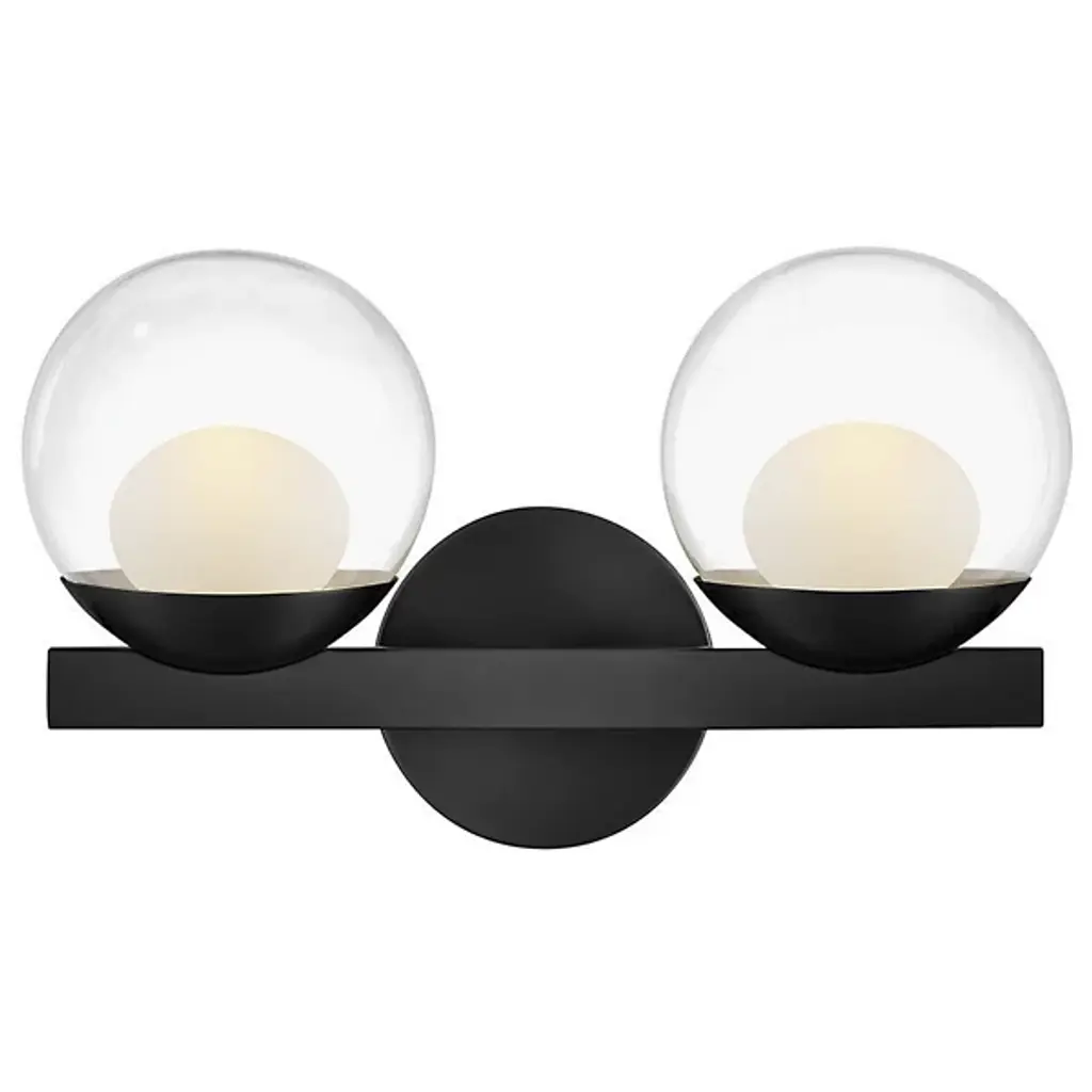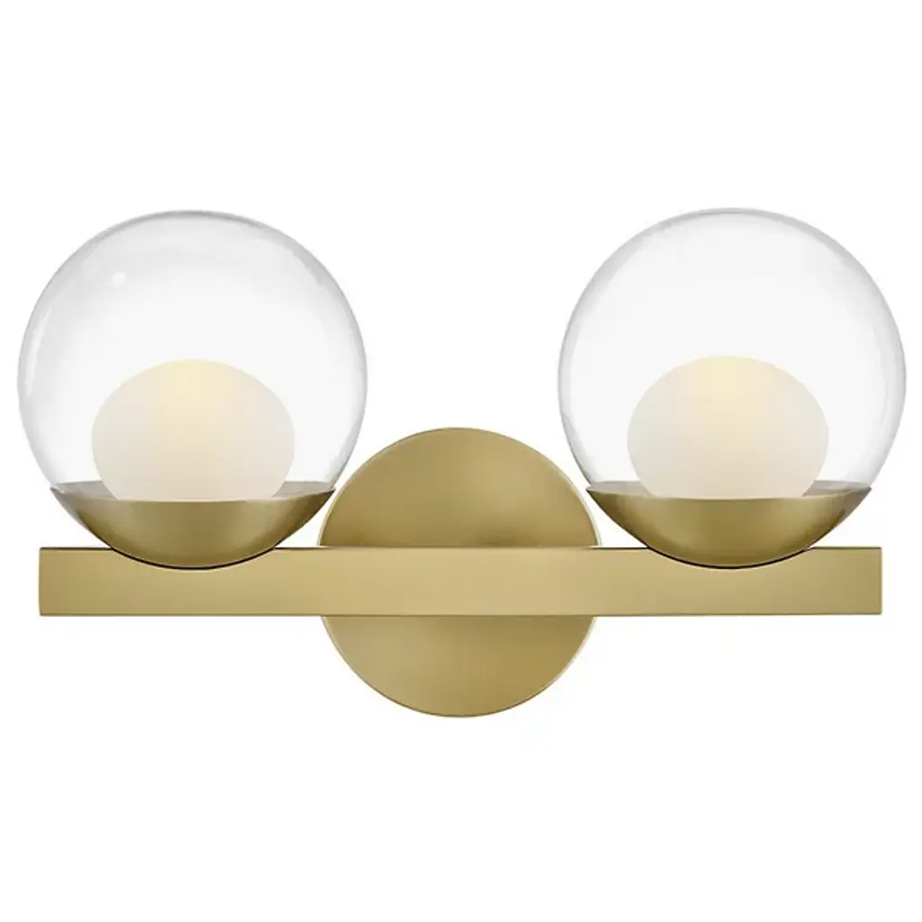The Sunni Vanity Light from Hinkley brings a thoughtful balance of clean lines and soft, ephemeral forms to bathroom settings. Anchored by a round wall plate, a horizontal steel bar supports damp-rated lighting, each lamp nested inside a metal dish and surrounded by a frosted inner shade. A larger, clear glass globe encases the inner elements, delivering a warm, diffused glow while adding refined character and a welcome touch of modern refinement to its surroundings.