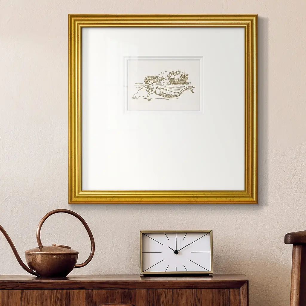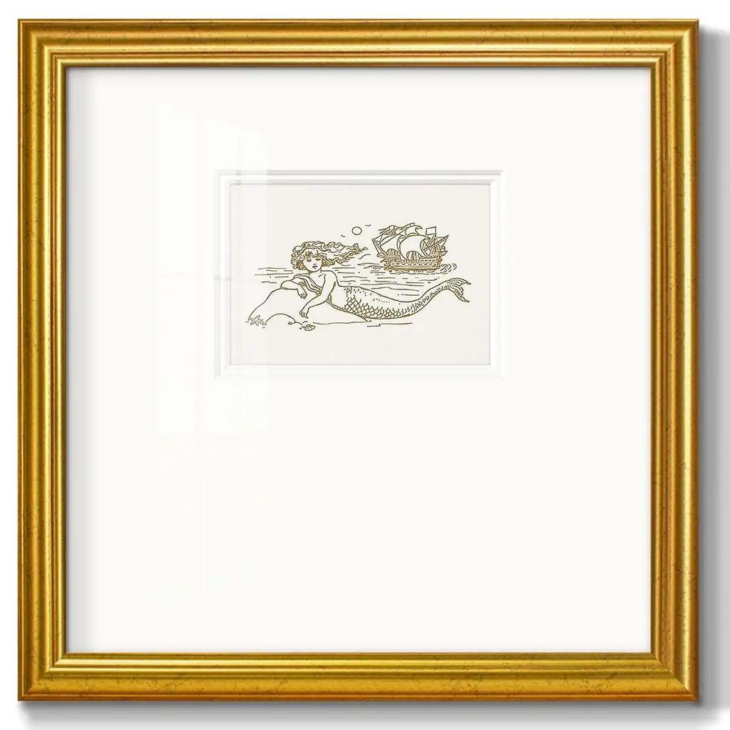 Sunning Mermaid Iipremium Framed Print - 16x16 - Gold