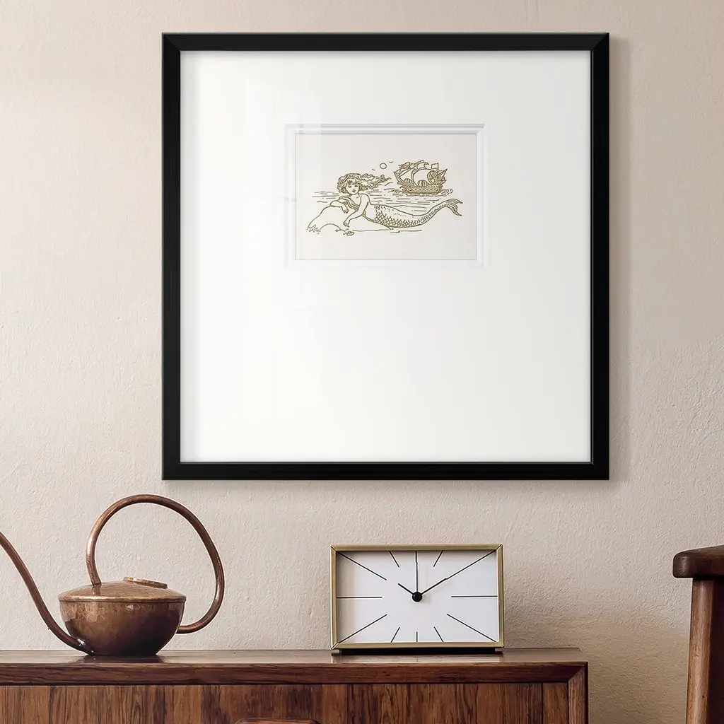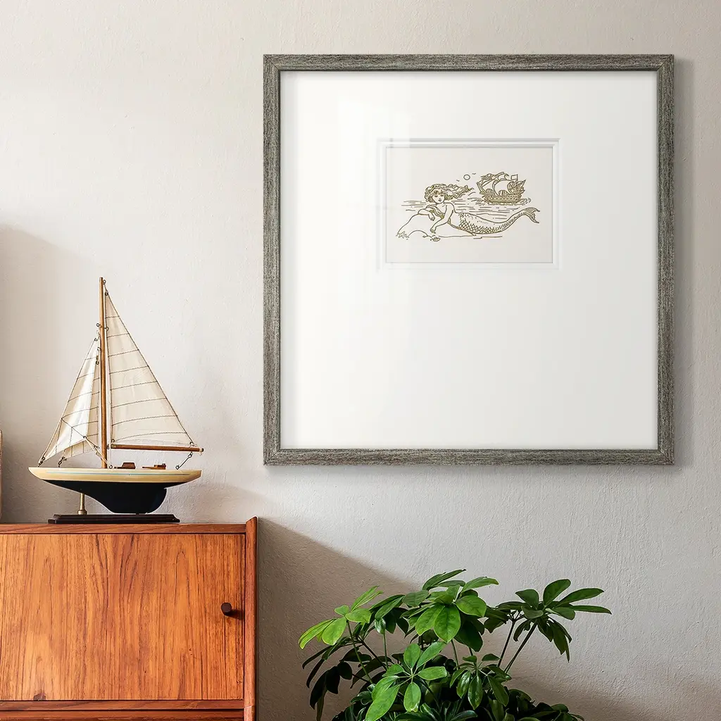 Sunning Mermaid IIPremium Framed Print A framed cold pressed paper print featuring superior double matting and quality frame. 2 SIZES AVAILABLE 16''X16''' - Overall Size 20''X20''' - Overall Size Each piece is made to order. Each piece comes with hanging hardware. Made in the USA Ready to Hang Giclee Paper Print Plexiglass Beveled Matt Board Double Matte Board