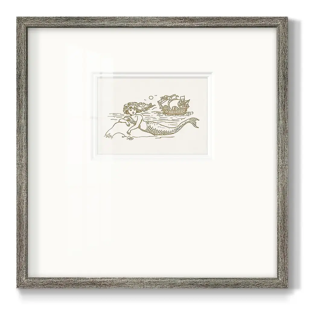 Sunning Mermaid IIPremium Framed Print A framed cold pressed paper print featuring superior double matting and quality frame. 2 SIZES AVAILABLE 16''X16''' - Overall Size 20''X20''' - Overall Size Each piece is made to order. Each piece comes with hanging hardware. Made in the USA Ready to Hang Giclee Paper Print Plexiglass Beveled Matt Board Double Matte Board