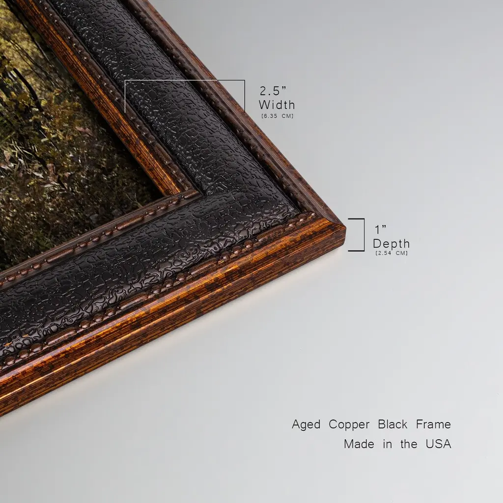 Sunny Grove Premium Framed Canvas- Ready to Hang A Premium Framed Canvas created to last. Framed in distressed wood and available in an array of sizes and colors Featuring a beveled a solid wood stretcher bar, each piece comes ready to hand 3 SIZES AVAILABLE 21''X37'' - Overall Size 25''X45'' - Overall Size 29''x53'' - Overall Size Each piece is made to order. Each piece comes with hanging hardware. Made in the USA Ready to Hang Giclee Paper Print Acrylic Glass Beveled Matt Board