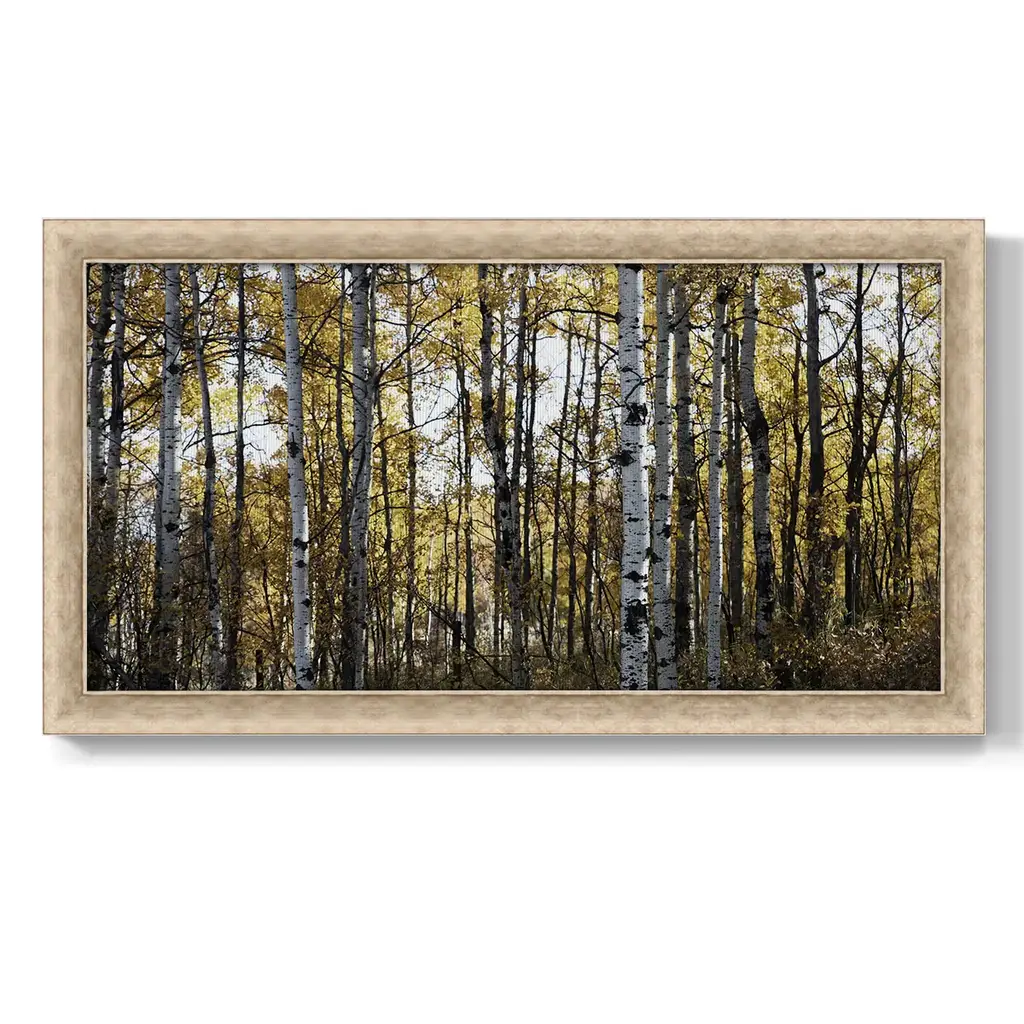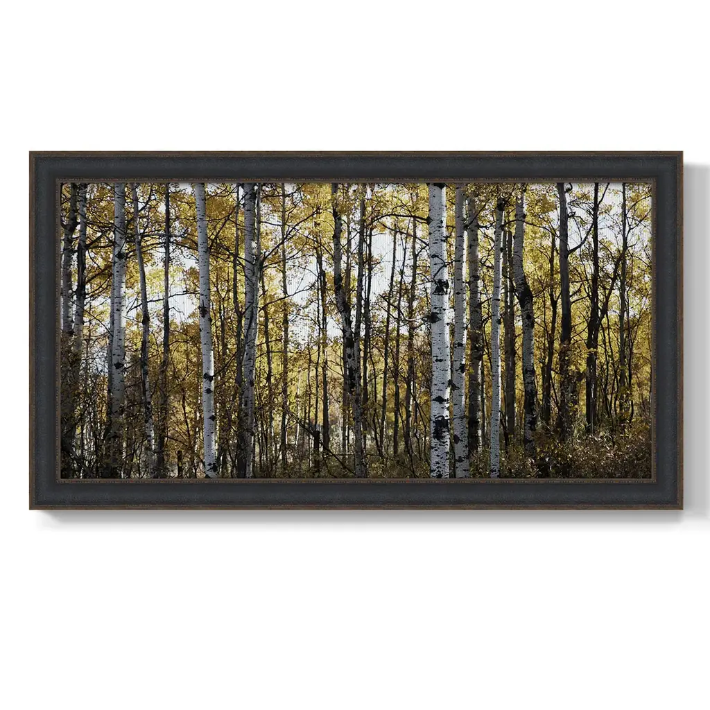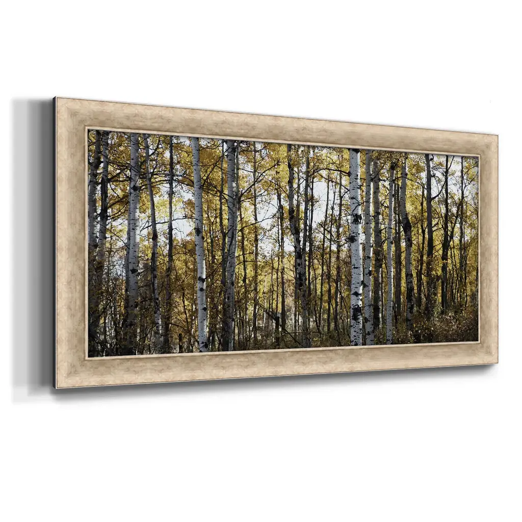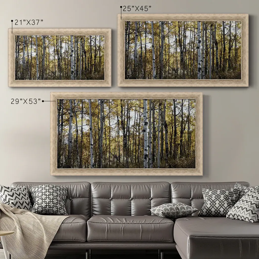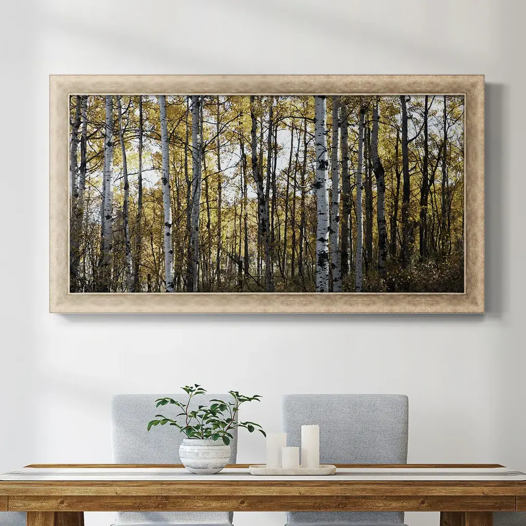 Sunny Grove Premium Framed Canvas- Ready to Hang A Premium Framed Canvas created to last. Framed in distressed wood and available in an array of sizes and colors Featuring a beveled a solid wood stretcher bar, each piece comes ready to hand 3 SIZES AVAILABLE 21''X37'' - Overall Size 25''X45'' - Overall Size 29''x53'' - Overall Size Each piece is made to order. Each piece comes with hanging hardware. Made in the USA Ready to Hang Giclee Paper Print Acrylic Glass Beveled Matt Board