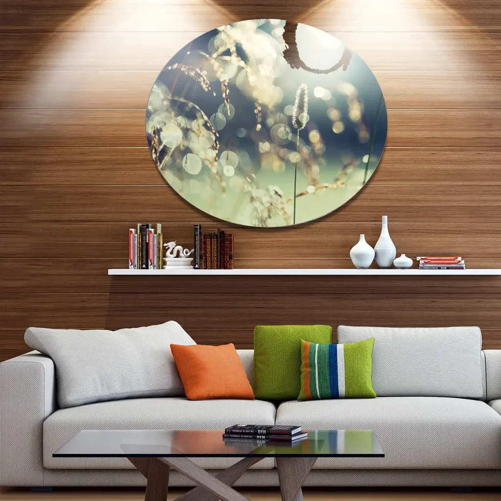 Bring Contemporary Abstraction to your home with this large Circle Metal wall art. This Sunny Meadow with Wild Flowers Metal Artwork makes it the focal point of any room or office. - White Gloss Coating ensures colors are extra vibrant with light reflection.- Aluminum grade Sheet Metal with 1 inch mounting frame on the back giving the illusion that the artwork is floating on the wall..- Mounting Brackets are included along with instructions.- High Quality Digital images are created directly into a glossy aluminum panel producing a stunning and captivating print into the glossy finish of the metal.- Water, Fire and Scratch resistant HD Aluminum panels.- Looks better than any photo paper and guaranteed to last at least 20 years- Easy to clean with a microfiber cloth. Colors are far superior to regular Canvas Art. - Easy to Hang