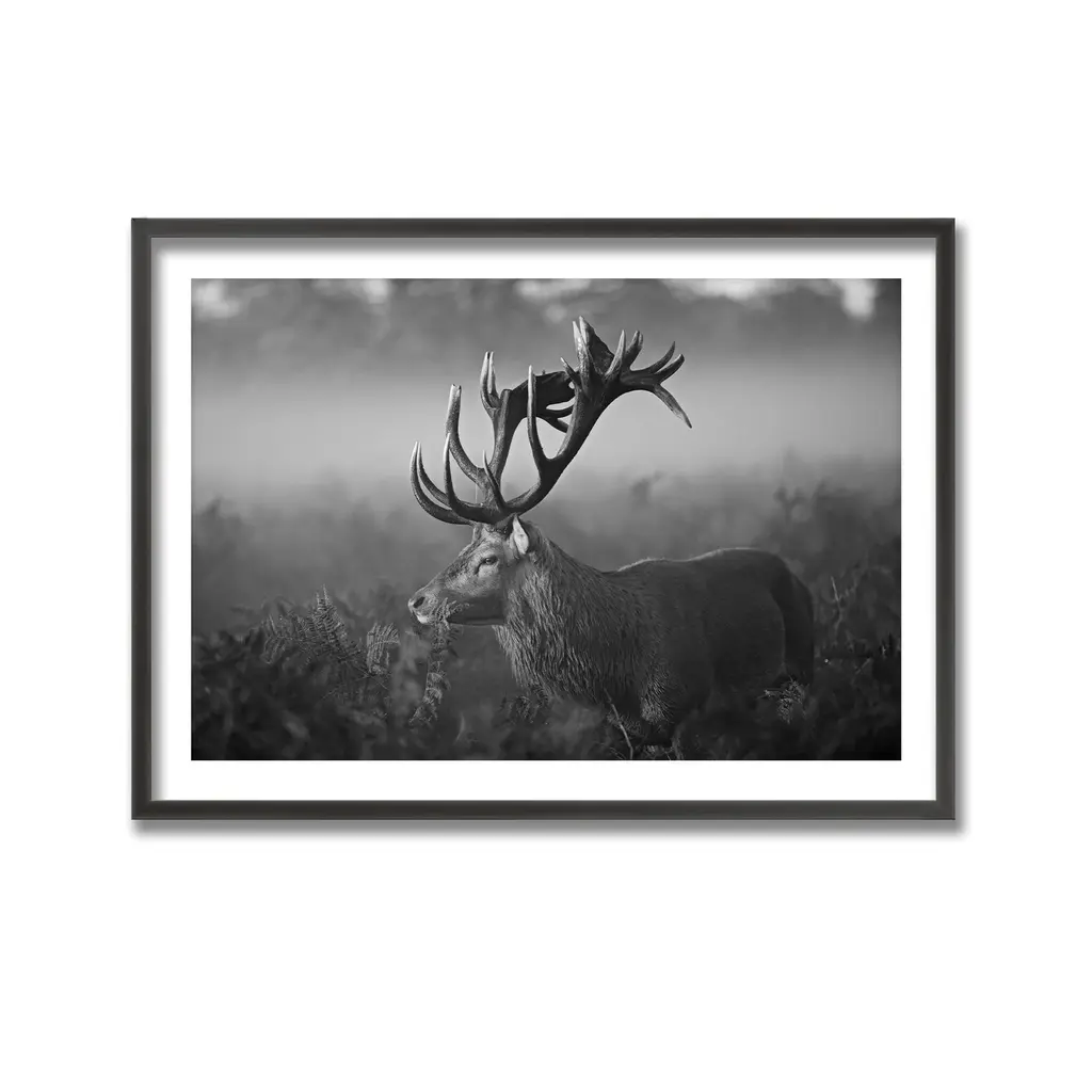 Infuse any space with the essence of this beautifully captured framed print photograph titled "Sunny Morning" by Robert Fabrowski. This piece features an a buck deer in dark monochromatic tones to complete any modern space. Handcrafted in Chattanooga, Tennessee, by Ready2HangArt using a locally sourced artist print, finished with a rear hanger for simple installation.