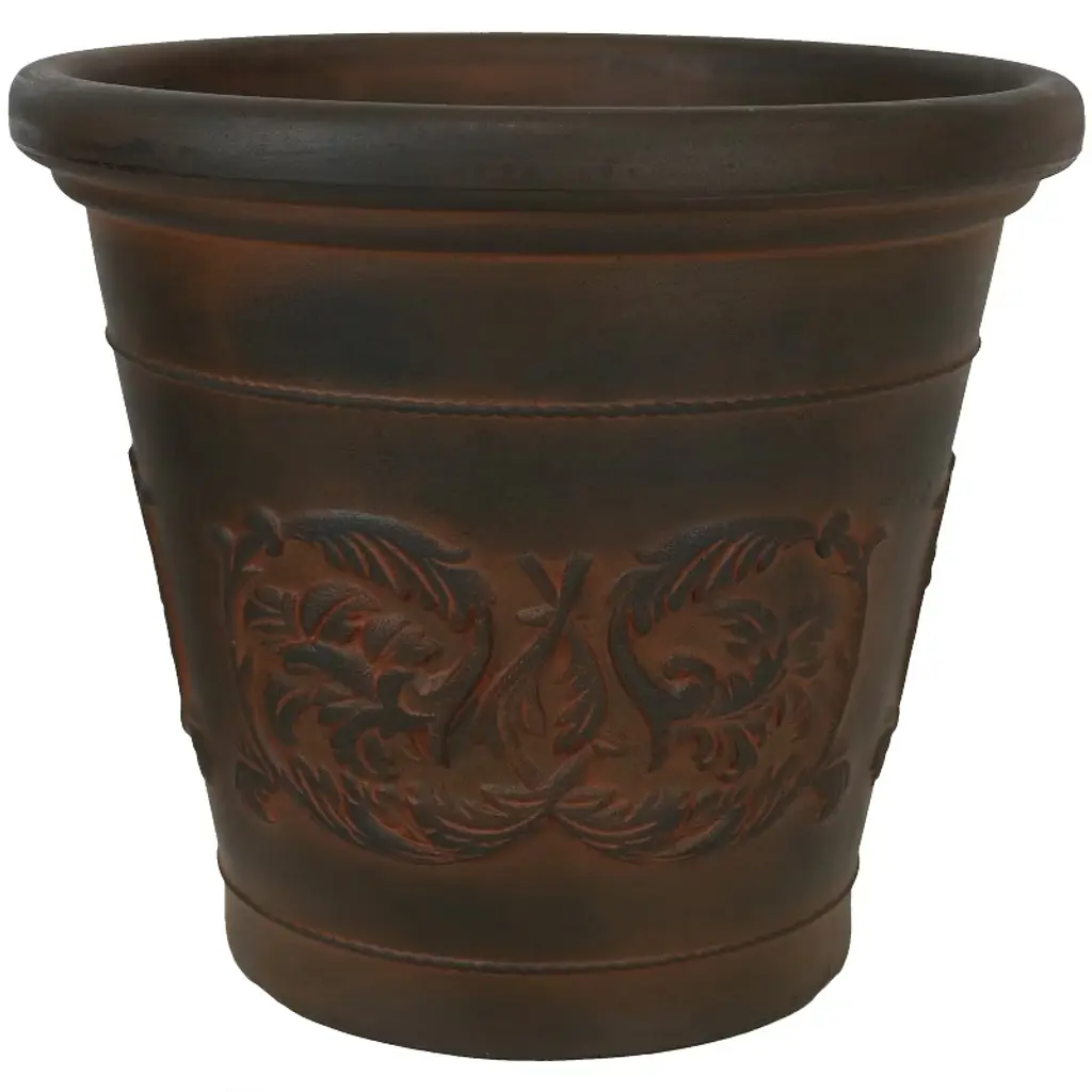 Give plants or blooms a place to thrive indoors or outdoors with this beautifully detailed and versatile planter. Use the decorative planter in any indoor space or outdoors on the patio, deck, porch, garden, or yard. The large garden pot is designed for all weather conditions due to its linear, low-density polyethylene (polyresin) construction and UV-resistant, hand-painted finish. The double-wall design with full-depth inner wall allows for optimal root insulation without compromising the soil capacity. The planter's outer wall can be filled with gravel or sand to weigh it down to withstand windy conditions. A drainage hole can be added to the area indicated on the bottom of the planter. Drill with a 1/4" bit through both walls for proper drainage. If using the planter indoors, be sure to use a protective saucer to protect floors from spills and water damage.• AMPLE GROWING SPACE: This outdoor flowerpot has a 13" outer top diameter, 11.75" inner top diameter, 7.25" outer bottom diameter, 6" inner bottom diameter, 9.75" outer height, and 9.5" inner height. The planter weighs 2 lbs. It can hold 2.63 gallons/0.35 cubic feet/10.5 quarts. The large size makes this planter great for growing plants and flowers both inside and outside.• LIGHTWEIGHT AND DURABLE: This patio planter pot is made from durable, linear low-density polyethylene (polyresin). Polyresin resists cracking from damaging UV rays and cold temperatures. The planter features a hand-painted finish that gives it a rich hue and weathered appearance. The flowerpot is lightweight and easy to carry to any indoor or outdoor space. Due to the manual painting process, some slight variations in color may occur.• EQUIPPED FOR DRAINAGE: The simple design of this large outdoor planter complements many different styles of decor. It's great for growing houseplants or bringing outdoor plants indoors for the winter. A drainage hole can be added to the area indicated on the bottom of the planter using a 1/4" drill bit. The planter is double-walled and must be drilled to penetrate both walls for proper drainage.• ENHANCED INSULATION: The full depth of the inner wall protects and insulates roots from changes in temperature without sacrificing soil capacity. The round plant pot's outer wall can be filled with gravel or sand to weigh it down to withstand windy conditions. Remove the plug at the bottom of the planter to fill the outer wall.• WORRY-FREE PURCHASING: Sunnydaze Decor backs its products with a 1-year manufacturer's warranty.