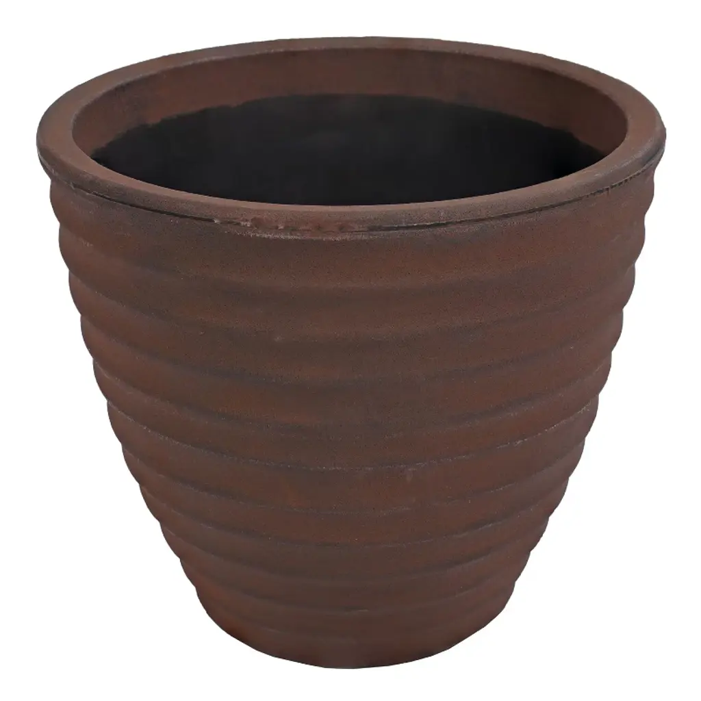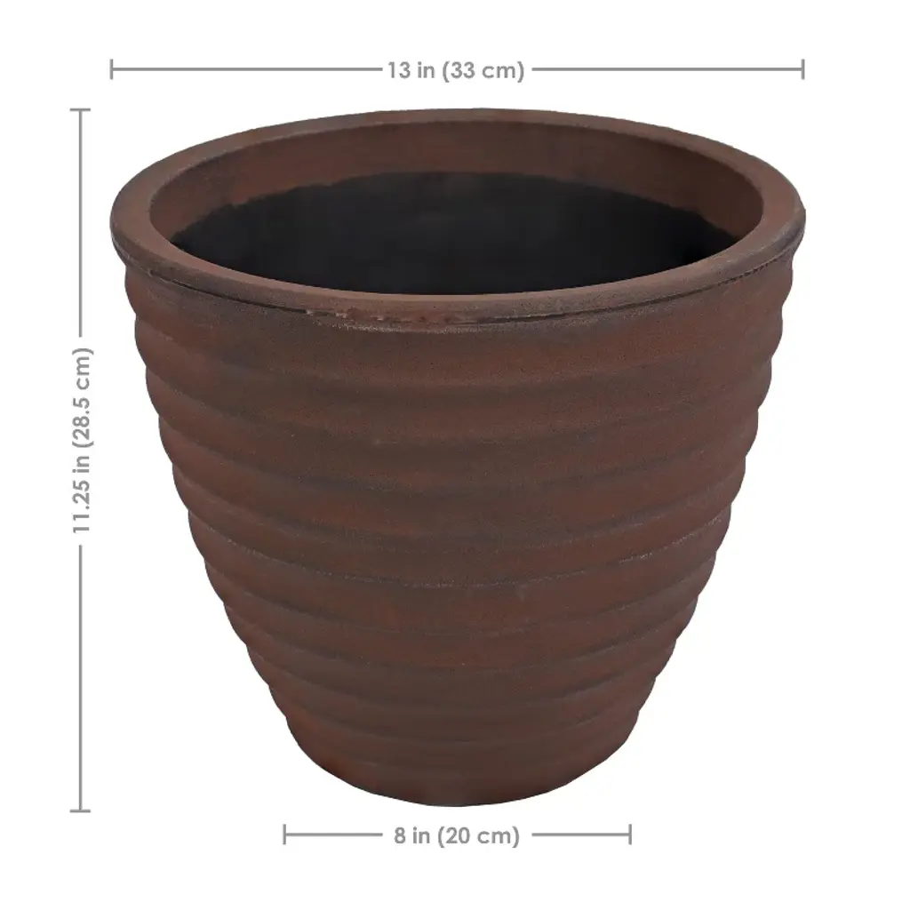 Sunnydaze Outdoor Ribbed Polyresin Planter Pot With Double Wall Design - Rust - 13" - 2Pk
