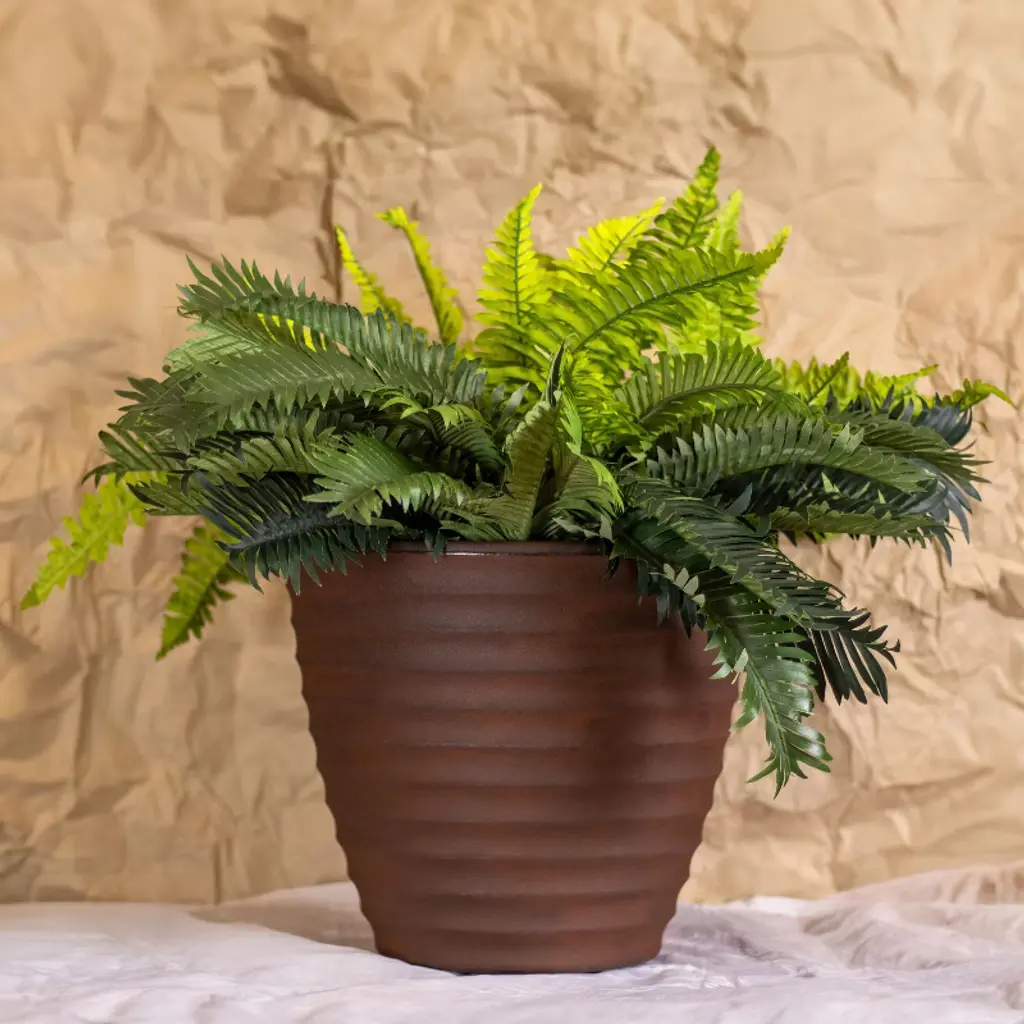 Sunnydaze Outdoor Ribbed Polyresin Planter Pot With Double Wall Design - Rust - 13" - 4Pk