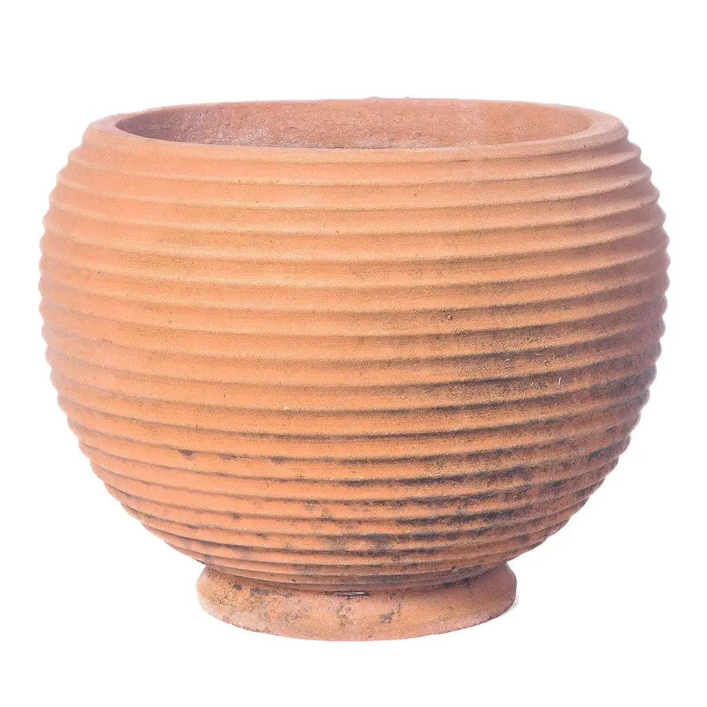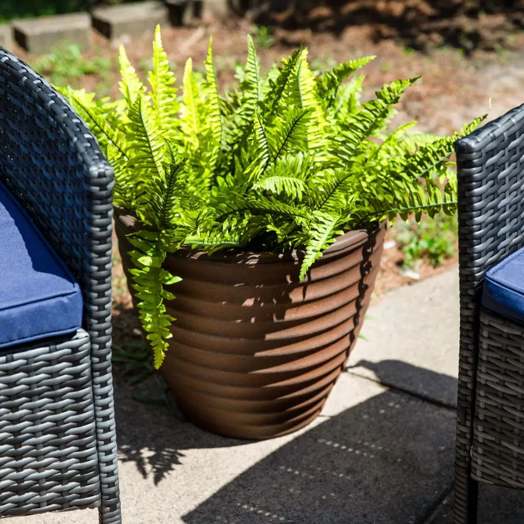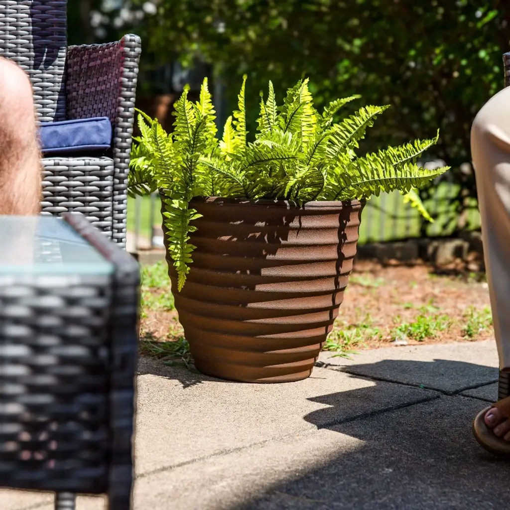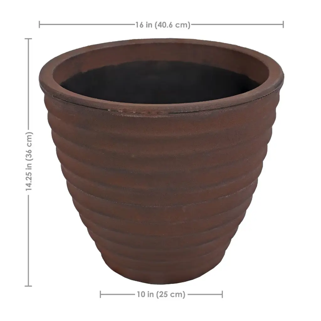 Sunnydaze Outdoor Ribbed Polyresin Planter Pot With Double Wall Design - Rust - 16"