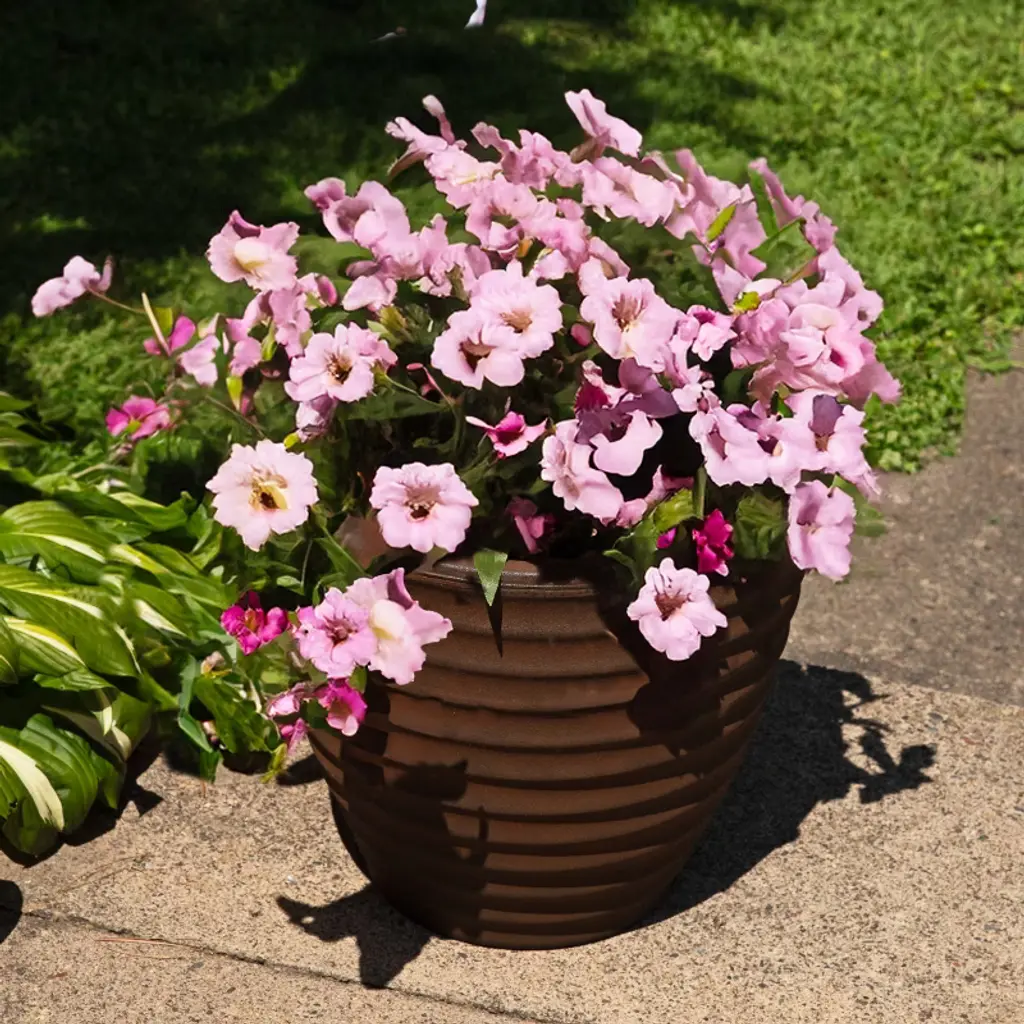 Bring life to the patio, deck, or other outdoor space with this stylish round plant pot. The neutral color and ribbed texture infuse rustic charm into plants and flowers and seamlessly blend with any indoor or outdoor setting. Ensure plants are properly watered by adding a drainage hole where marked on the bottom of the planter. Designed for all seasons, this flowerpot is made from durable linear low-density polyethylene (polyresin) to withstand the test of time. The planter's double-wall structure and full-depth inner wall provide optimal root insulation without compromising soil capacity. To help keep the planter upright in windy conditions, fill the space between the walls with gravel or sand for added stability. This versatile plastic planter pot can also grace indoor spaces. Use it in the living room, bedroom, or sunroom to bring life to common areas. If a drainage hole is added, be sure to use a saucer beneath the large plant pot to protect the floor from water overflow.• CONVENIENT SIZE: This ribbed front porch flower pot has a 16" top outer diameter (10" bottom outer diameter) and has a 14.25" outer height. It has an inner top diameter of 14.25" (9.25" inner bottom diameter) and has a 11.5" inner height. It weighs 2.8 lbs. It has a soil capacity of 5.5 gallons/0.73 cubic feet/22 quarts. The large size makes this planter great for growing plants and flowers both inside and outside.• DURABLE CONSTRUCTION: This large planter pot is made from linear low-density polyethylene (polyresin) to last through years of use. While durable, the material is also lightweight to ensure moving the planter from the patio to the sunroom is easy. The hand-painted finish, neutral color, and textured appearance make this planter a staple for any outdoor or indoor area. Due to the manual painting process, slight variations in color may occur.• ROOT PROTECTION: This decorative planter for outdoor plants features a double-walled design. The inner wall protects and insulates roots from changes in temperature. The space between the inner and outer walls can be filled with sand or gravel to prevent it from tipping over in windy conditions. The plug at the bottom of the planter is not for drainage; this is where it can be filled with gravel or sand.• OPTIONAL DRAINAGE HOLE: While there isn't a drainage hole pre-drilled in this modern garden pot, one can be added to the area indicated on the bottom using a 1/4" drill bit. Be sure the drill penetrates both the interior and exterior walls. If a drainage hole is added and the planter is used indoors, be sure to place a saucer underneath to prevent water from spilling.• WORRY-FREE PURCHASING: Sunnydaze Decor backs its products with a 1-year manufacturer's warranty.