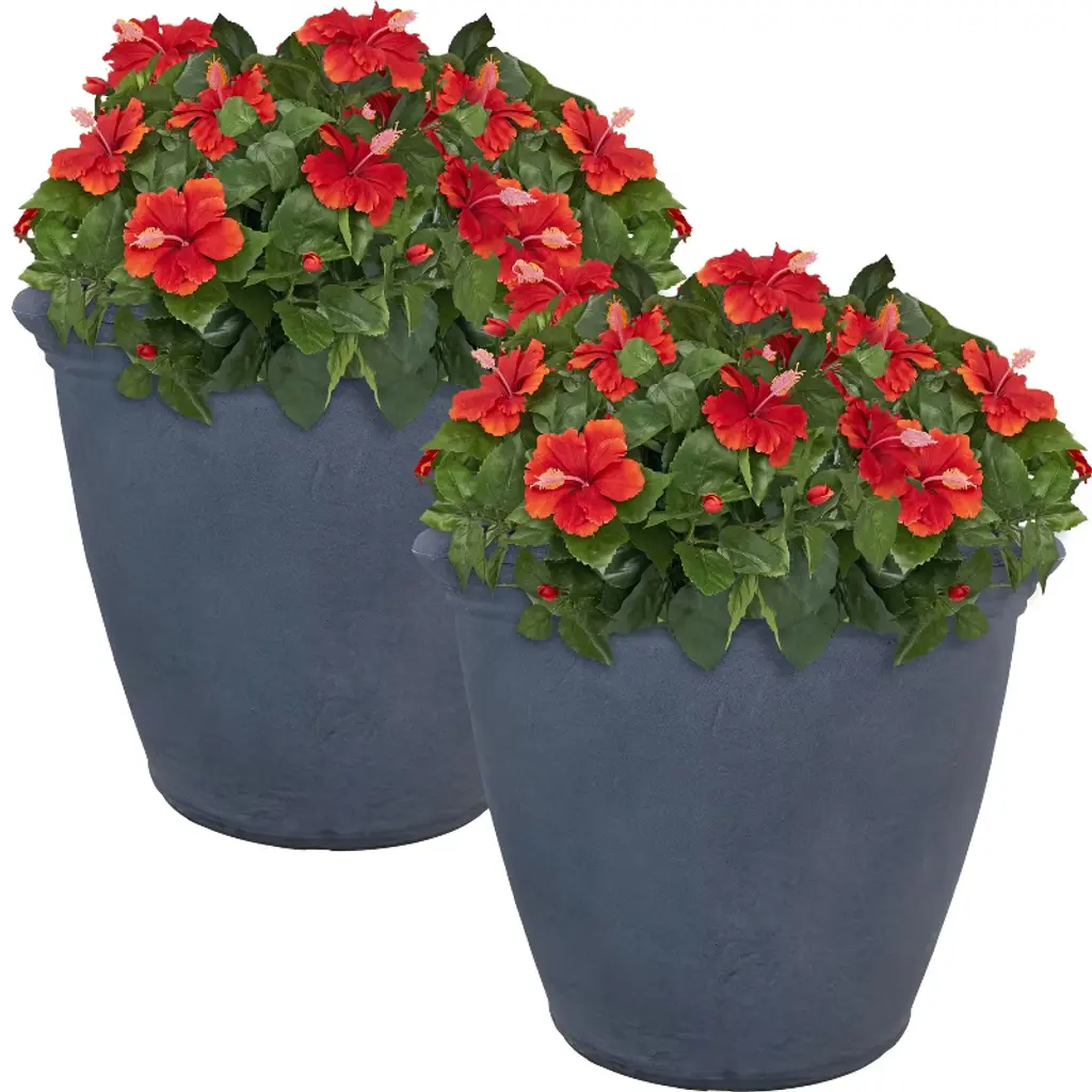Sunnydaze Weather-resistant Double-walled Anjelica Outdoor Flower Pot Planter - 20" - Slate Finish - 2Pk