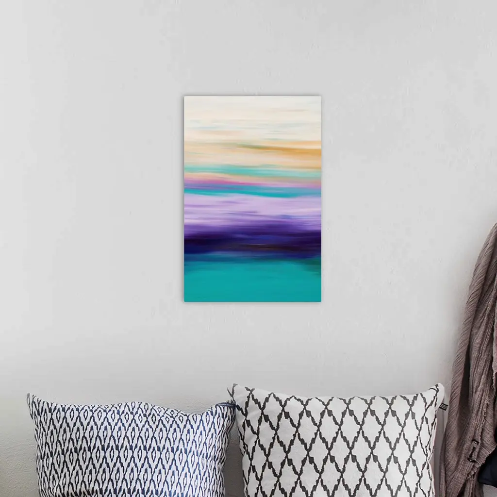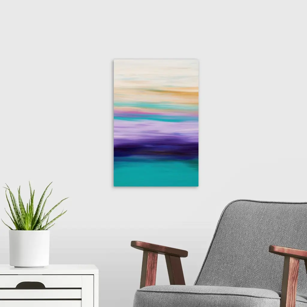 A contemporary abstract painting using wild vibrant colors and weathered and worn textures.