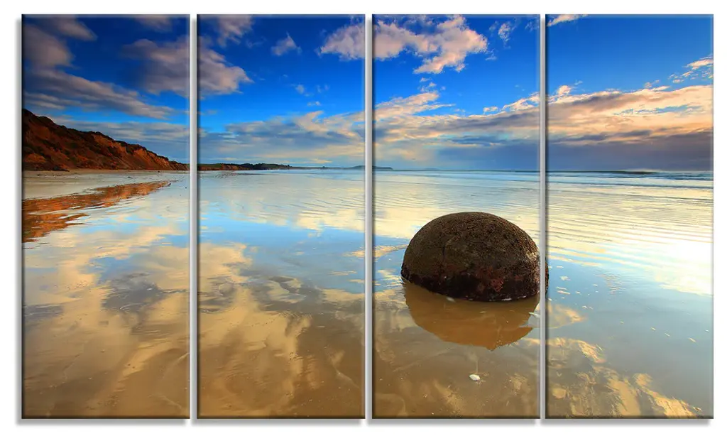 "Sunrise At Moeraki Boulders" Seashore Canvas Photo Print, 4 Panels, 48"x28"