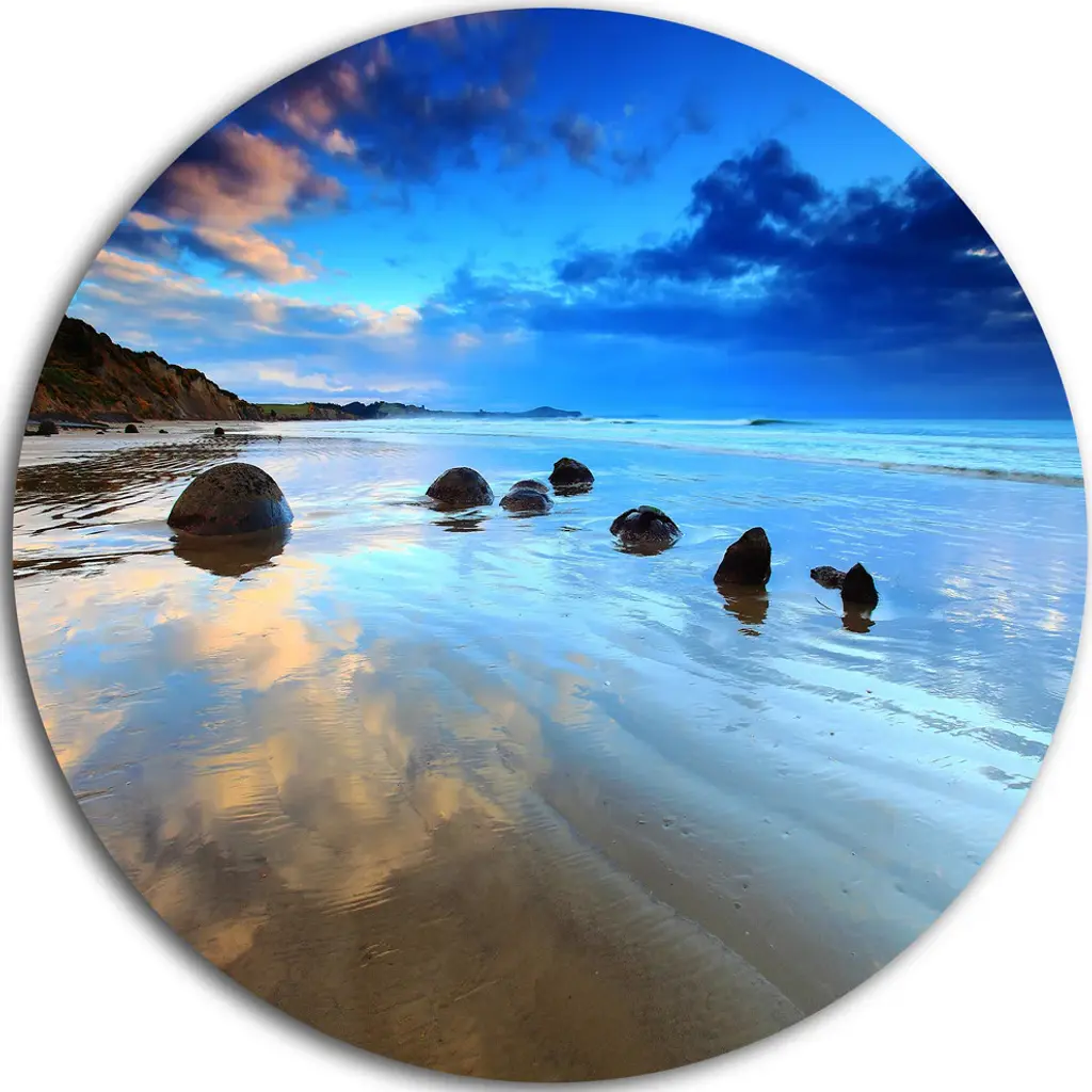 Sunrise At Moeraki Boulders, Seashore Photo Disc Metal Wall Art, 36"