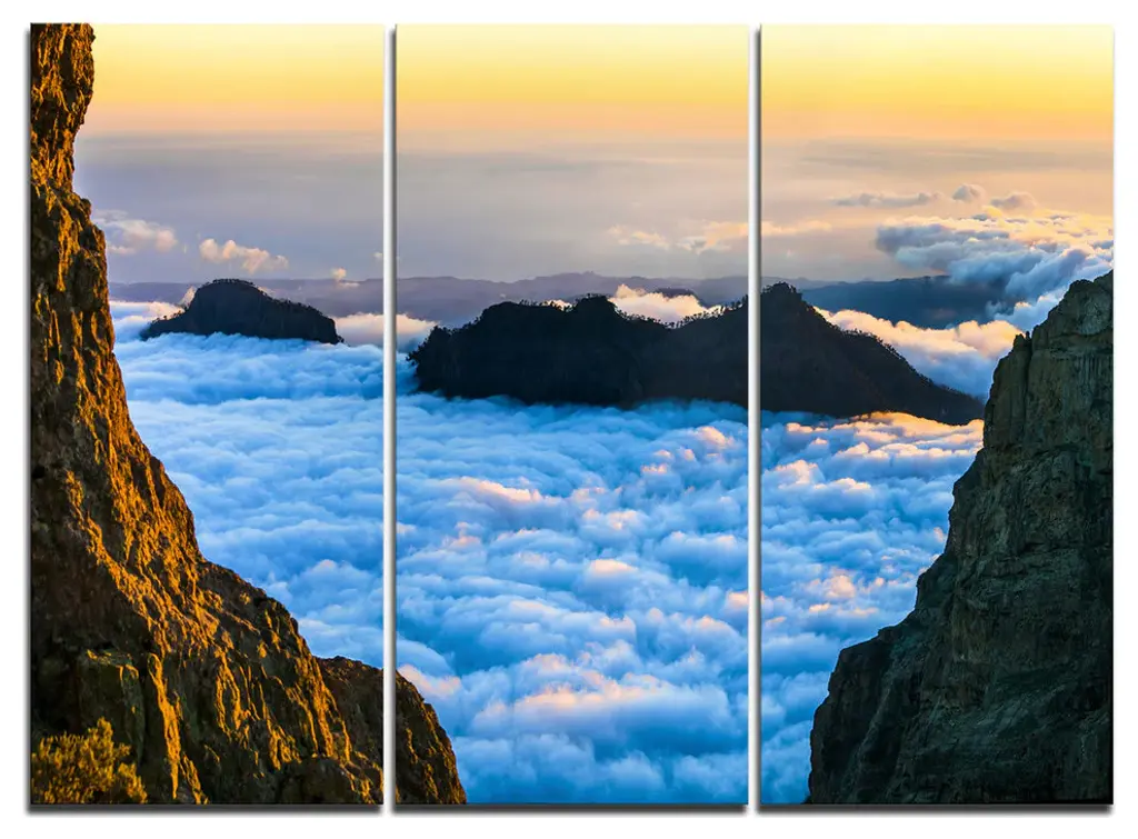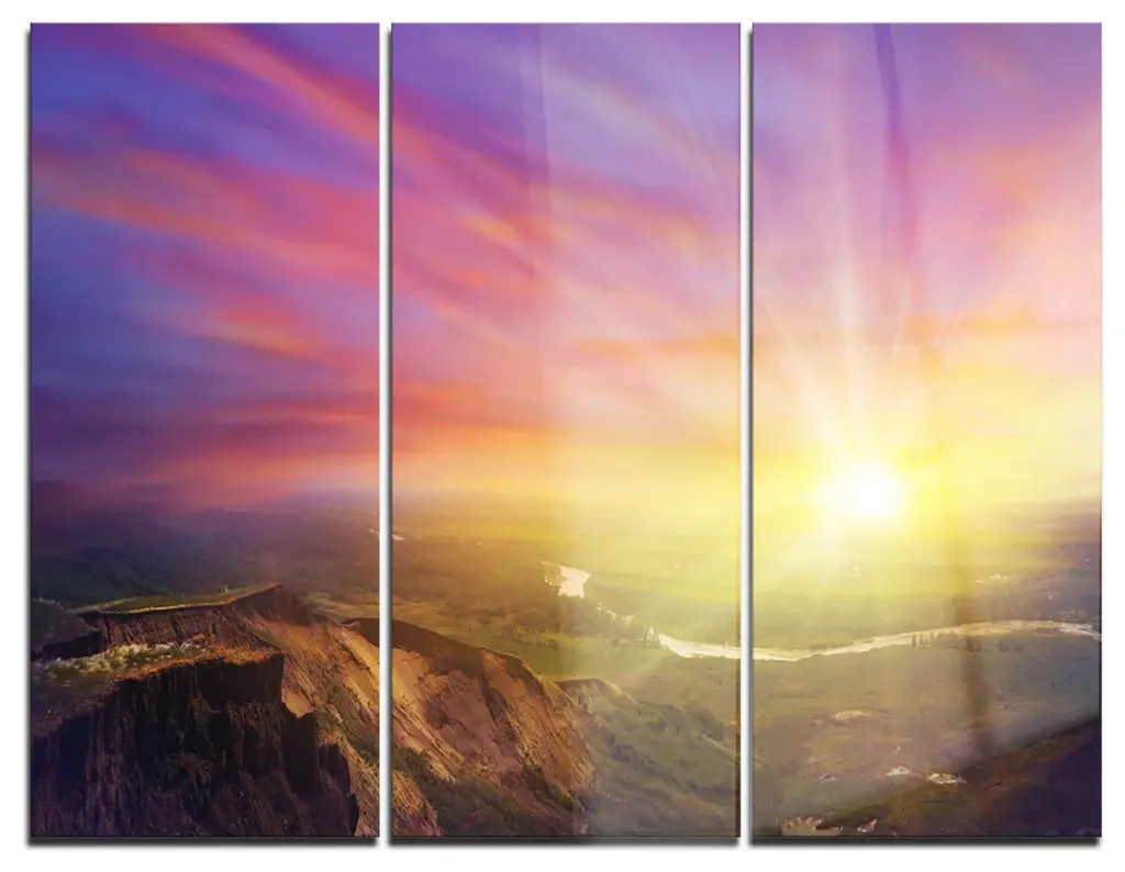 "Sunrise In Ai Petri Mountains" Photo Metal Wall Art, 3 Panels, 36"x28"