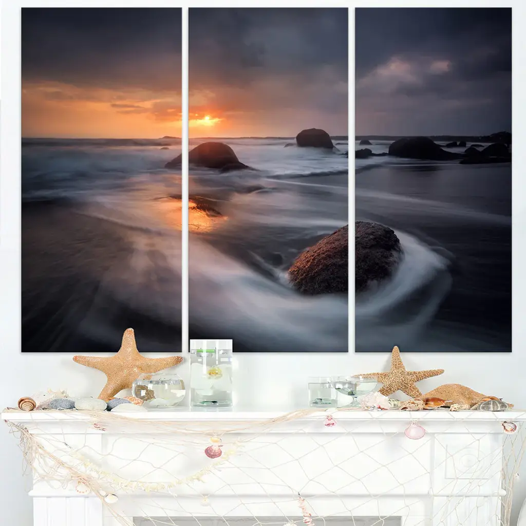 "Sunrise In Burgas Bay Near Atia" Metal Wall Art, 3 Panels, 36"x28"