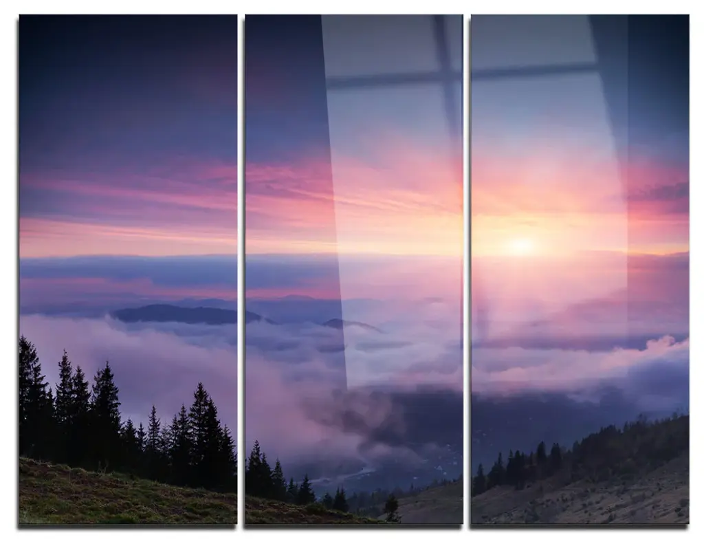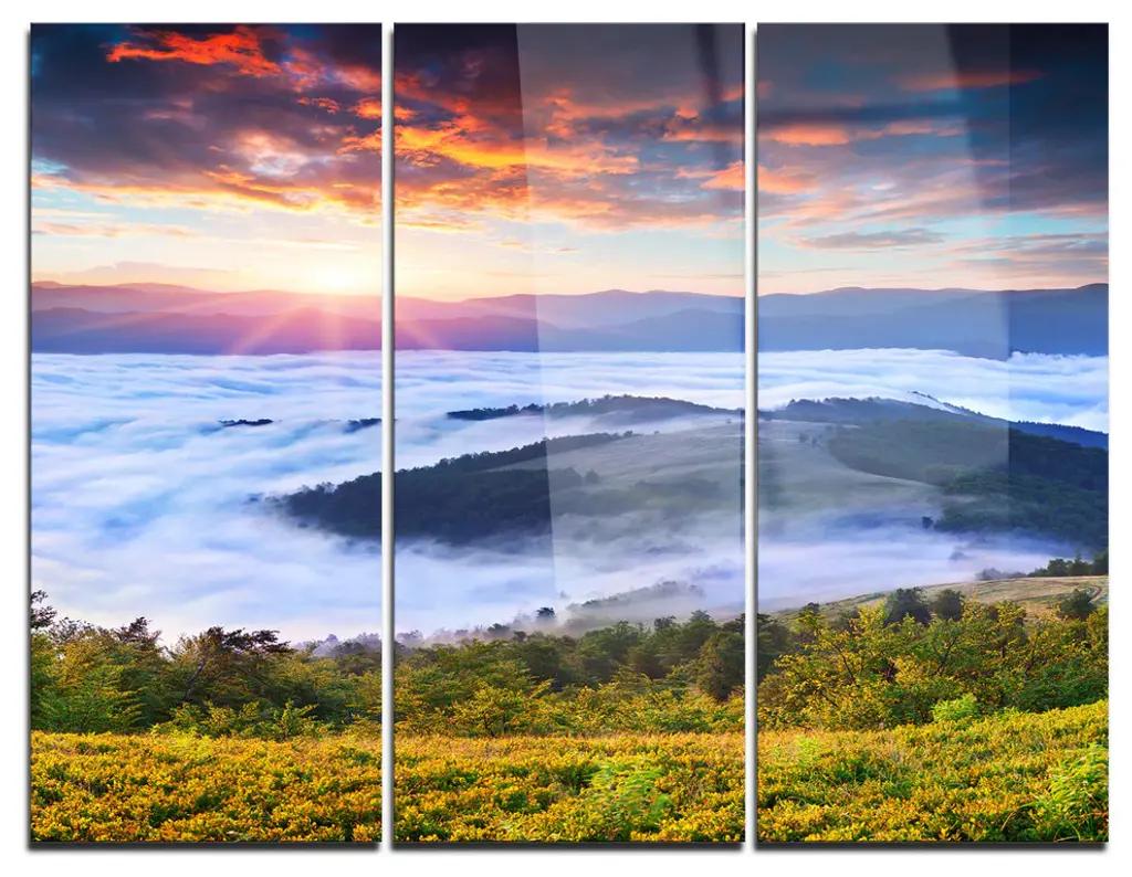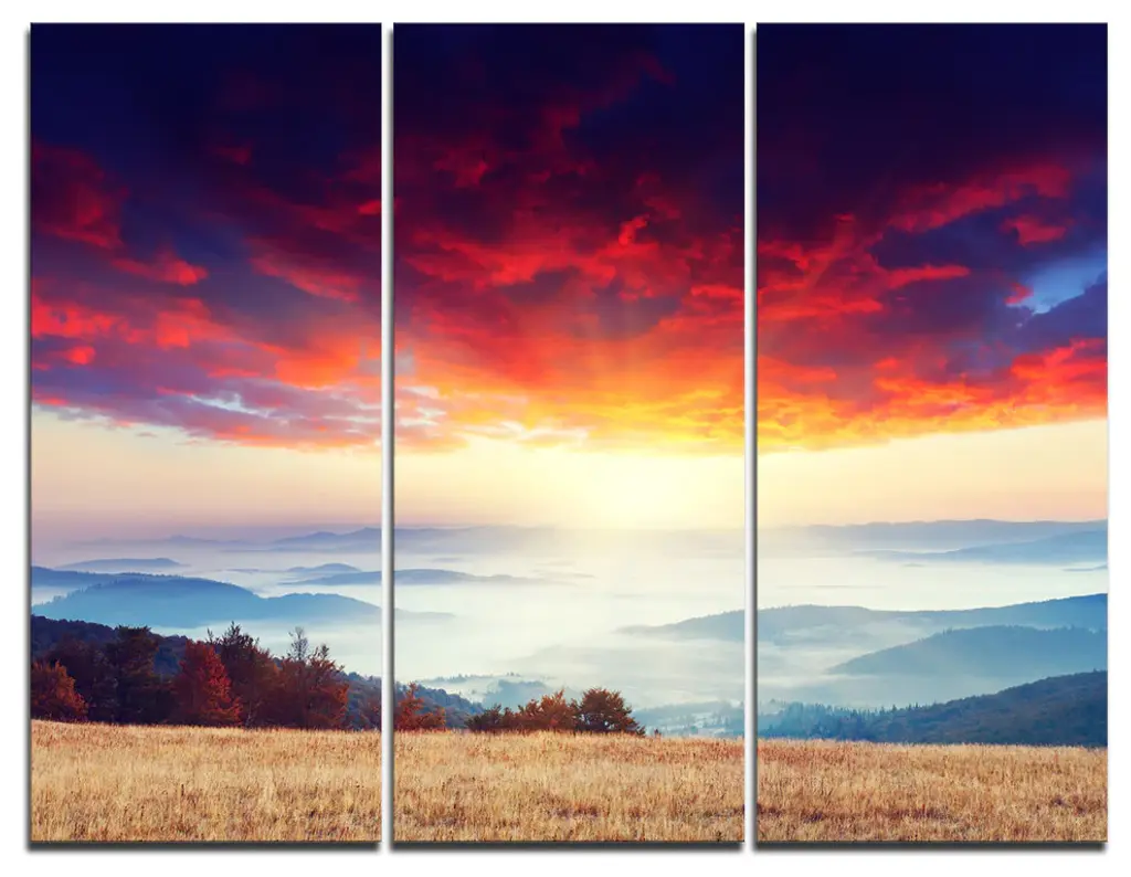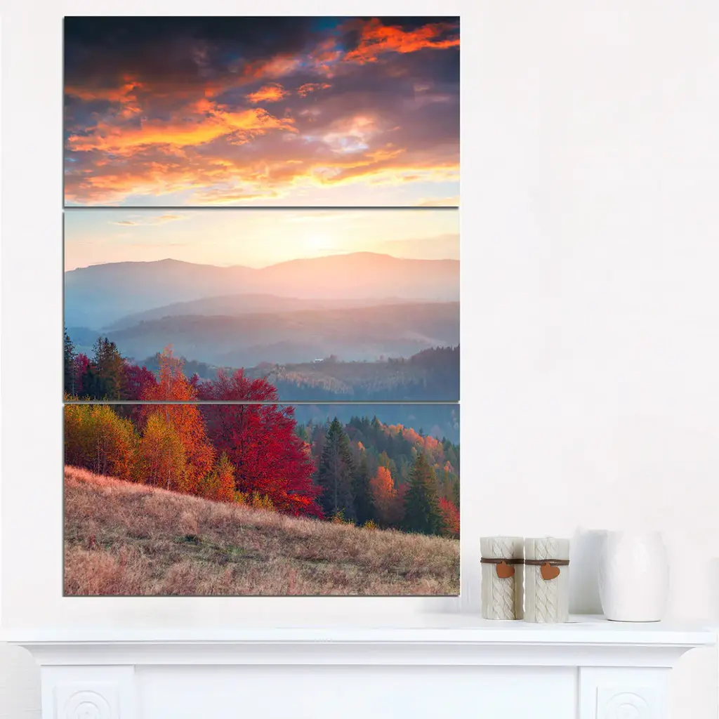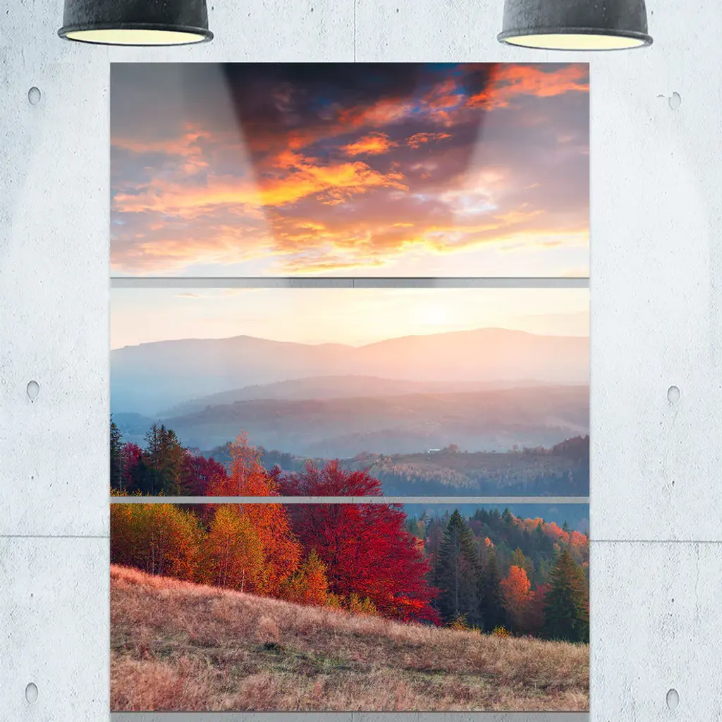"Sunrise In Carpathian Mountains" Photo Metal Wall Art, 3 Panels, 28"x36"