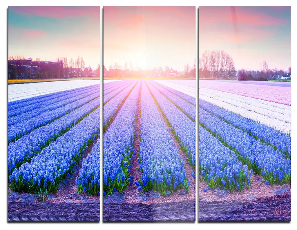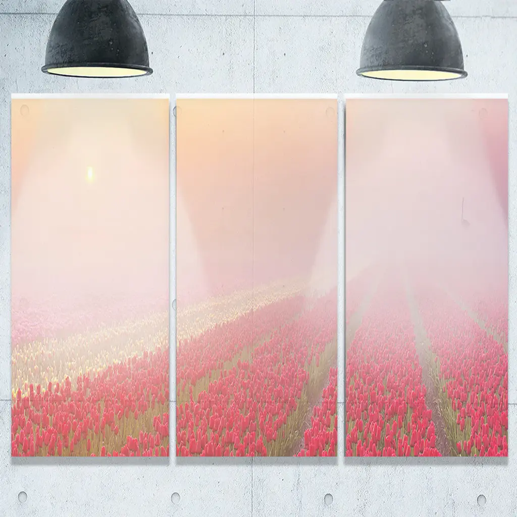 "Sunrise Over Rows Of Tulips" Metal Wall Art, 3 Panels, 36"x28"