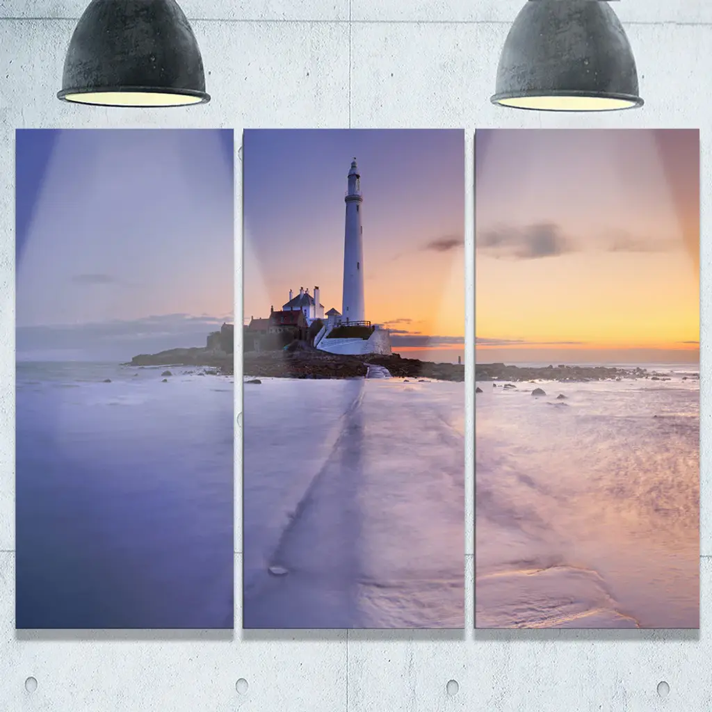 "Sunrise Over St. Mary's Lighthouse" Metal Wall Art, 3 Panels, 36"x28"