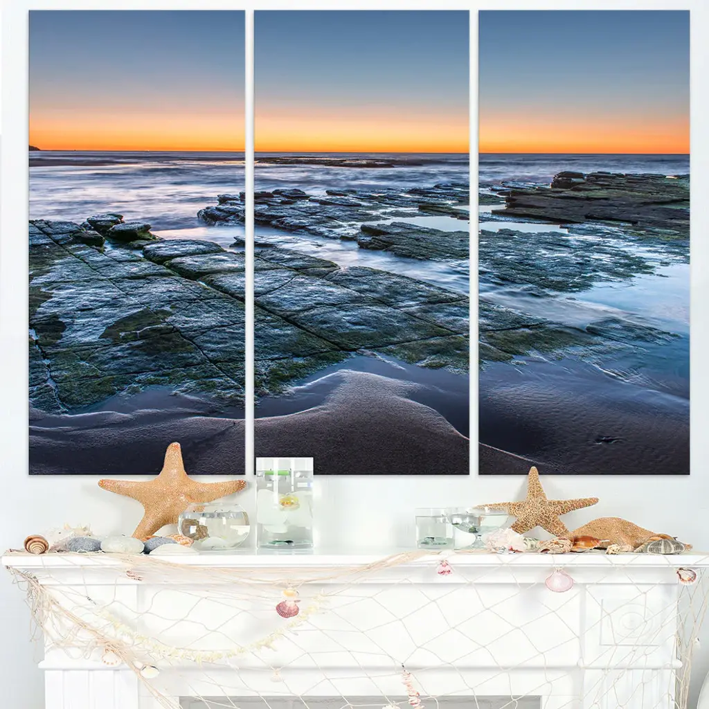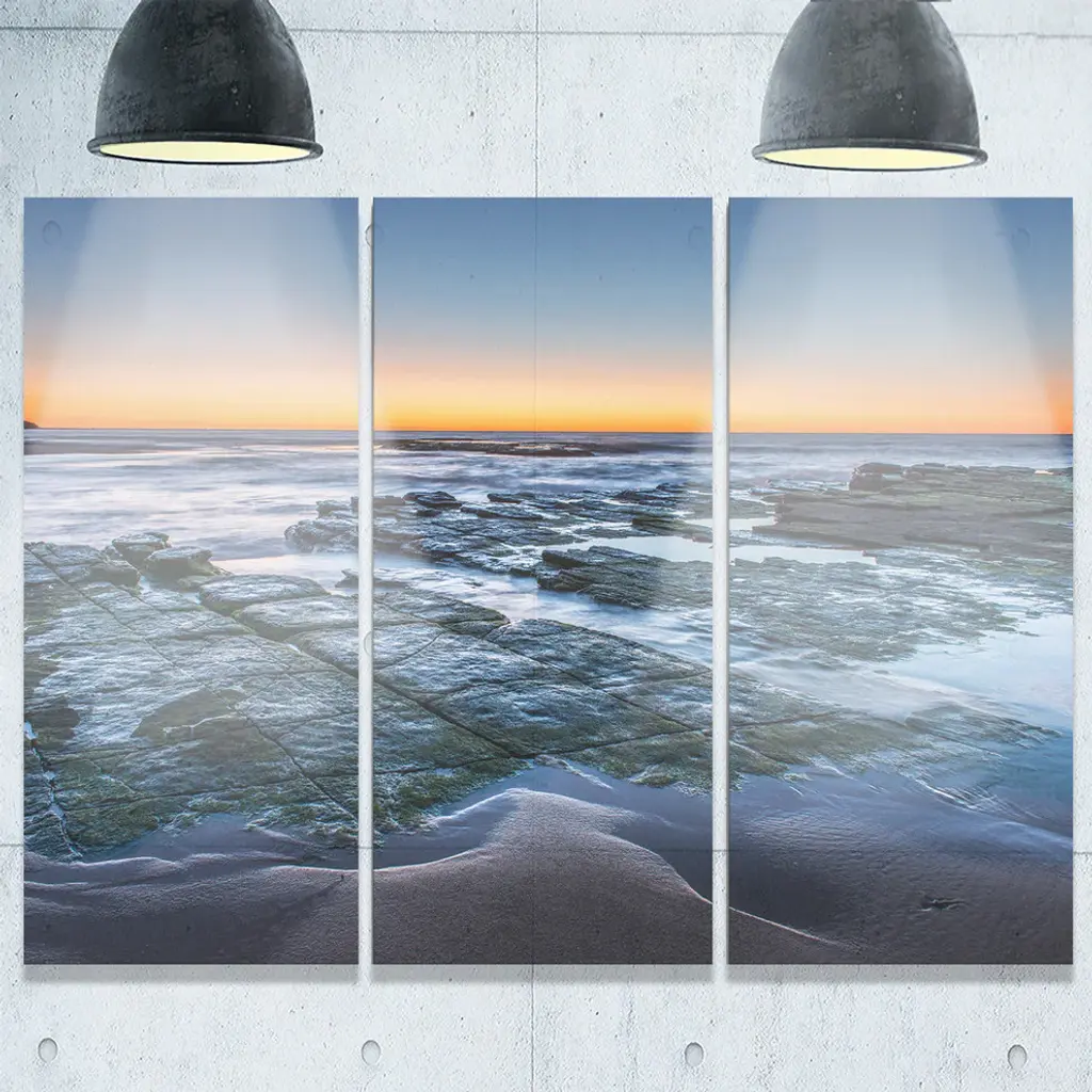 "Sunrise Over Wide Sydney Ocean" Metal Wall Art, 3 Panels, 36"x28"