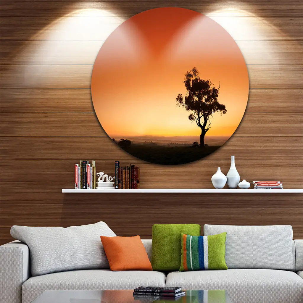Sunrise With Lonely Tree, Disc Metal Artwork Landscape, 36"