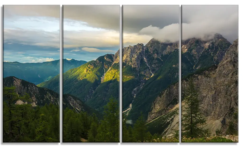 "Sunrise With Yellow Reflection" Landscape Photo Wall Art, 4 Panels, 48"x28"