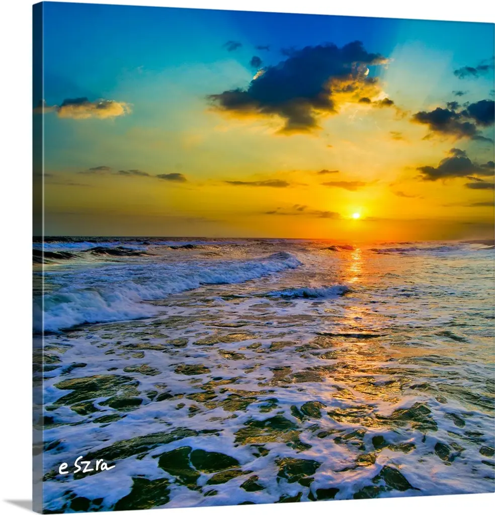 The Sunset at Alghero under Dramatic Sky canvas art print is sure to make an impression on anyone who sees it. This artwork is gallery wrapped around a 1-inch solid wood frame and arrives carefully packaged and entirely ready to hang on the wall. Design Art only uses the highest resolution and pigments to ensure a crisp colorful print that is never faded or pixelated. This artwork is sure to be a conversation starter in any home or office.