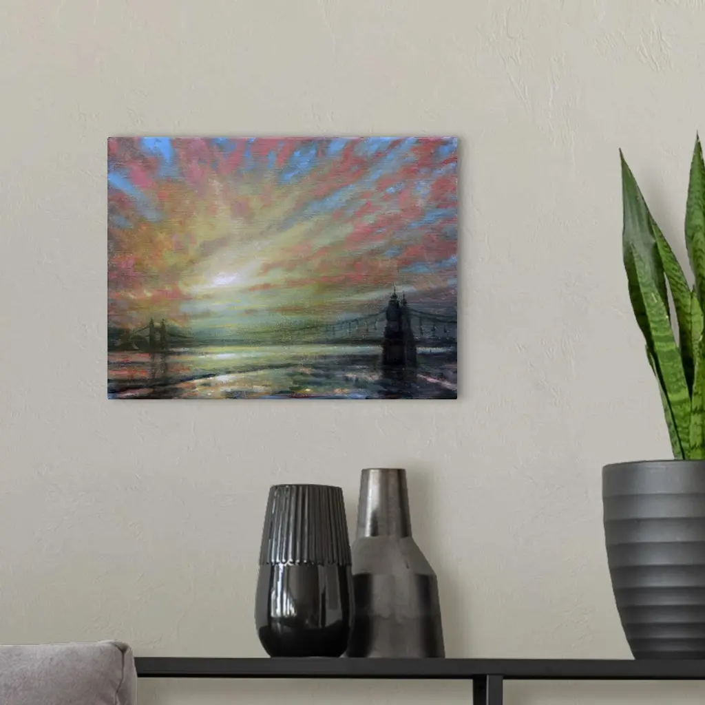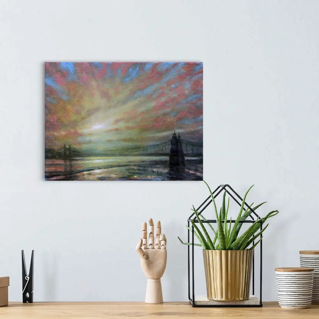7310514 Sunset At Hammersmith Bridge, 2022 (Oil on Canvas) by Hare, Derek (b.1945); 46x36 cm; Private Collection; Derek Hare. All rights reserved 2022. Please note: The artwork in this photograph is in copyright. Bridgeman Images represents the artist and will clear the additional copyright on your behalf & copyright fee will be added to your quote/invoice. Please contact Bridgeman Images for further information.
