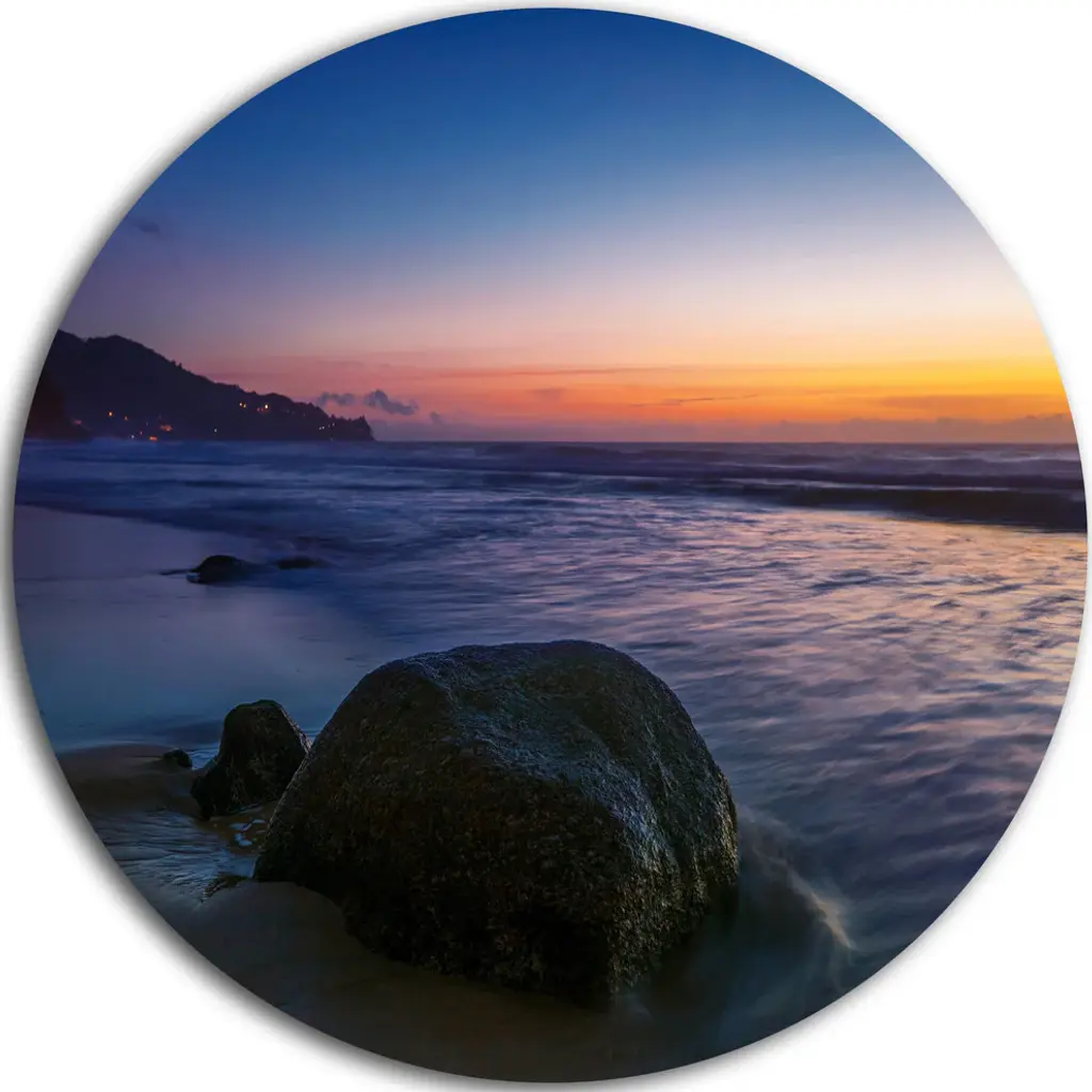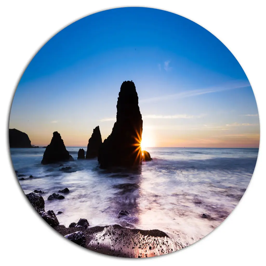 Bring Contemporary Abstraction to your home with this large Circle Metal wall art. This Sunset at Rodeo Beach Panorama Metal Artwork makes it the focal point of any room or office. - White Gloss Coating ensures colors are extra vibrant with light reflection.- Aluminum grade Sheet Metal with 1 inch mounting frame on the back giving the illusion that the artwork is floating on the wall..- Mounting Brackets are included along with instructions.- High Quality Digital images are created directly into a glossy aluminum panel producing a stunning and captivating print into the glossy finish of the metal.- Water, Fire and Scratch resistant HD Aluminum panels.- Looks better than any photo paper and guaranteed to last at least 20 years- Easy to clean with a microfiber cloth. Colors are far superior to regular Canvas Art. - Easy to Hang