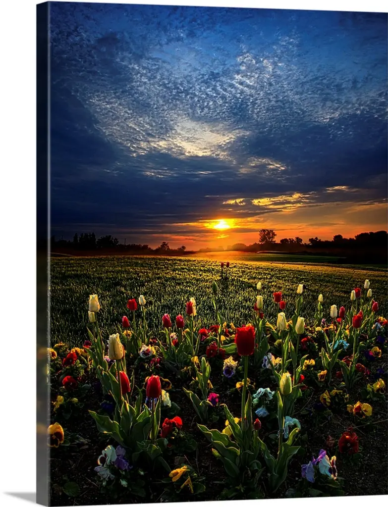 The Sunset Flowers with Red Sky canvas art print is sure to make an impression on anyone who sees it. This artwork is gallery wrapped around a 1-inch solid wood frame and arrives carefully packaged and entirely ready to hang on the wall. Design Art only uses the highest resolution and pigments to ensure a crisp colorful print that is never faded or pixelated. This artwork is sure to be a conversation starter in any home or office.