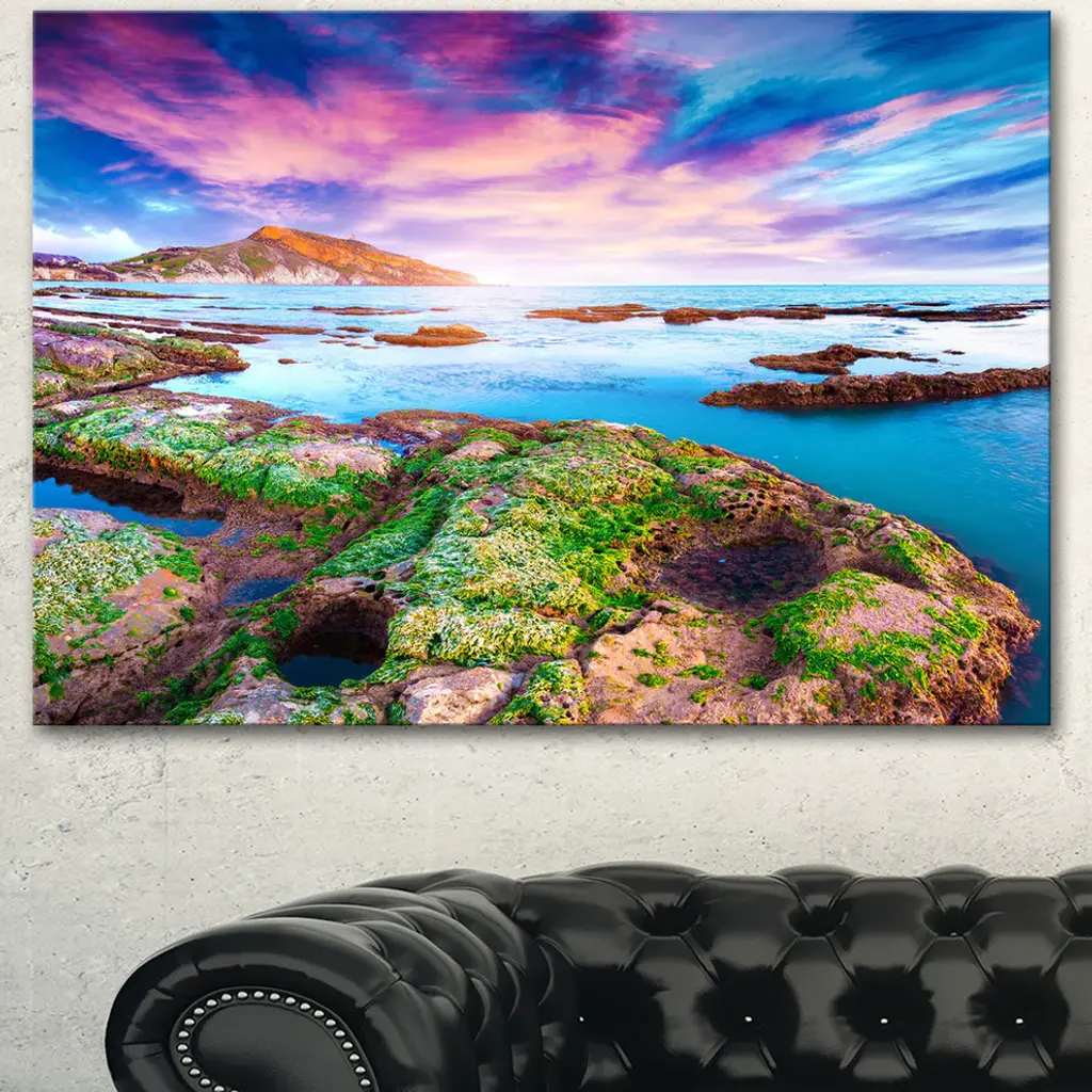 Sunset From The Giallonardo Beach, Landscape Canvas Art Print, 60"x28"