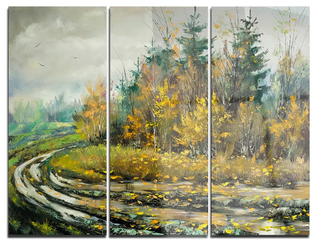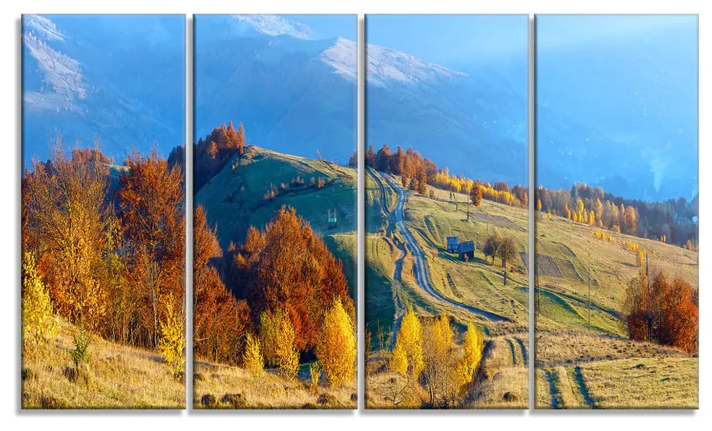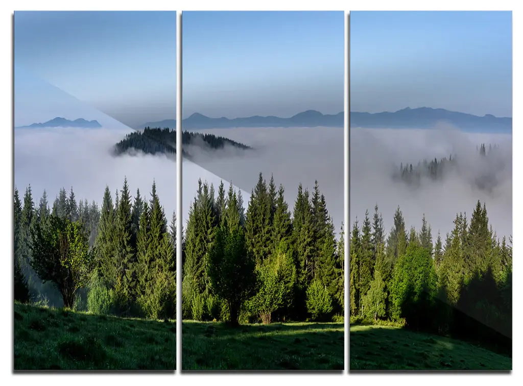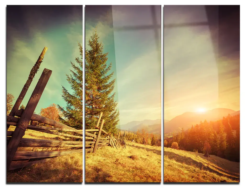 "Sunset In Mountains" Glossy Metal Wall Art, 3 Panels, 36"x28"