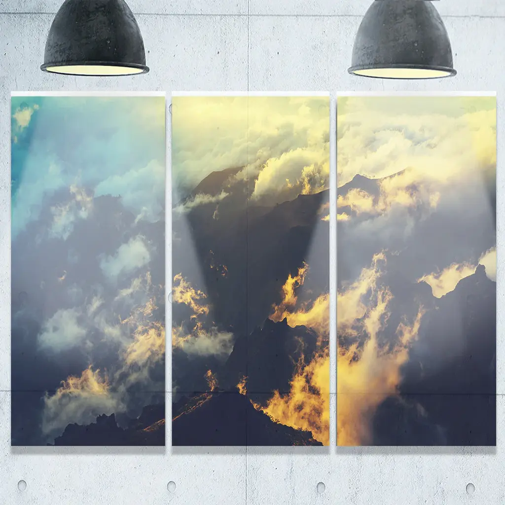 "Sunset On Hill Above Clouds" Metal Landscape, 3 Panels, 36"x28"