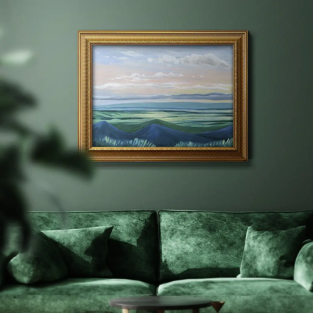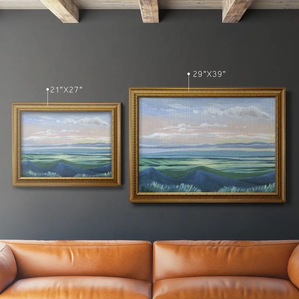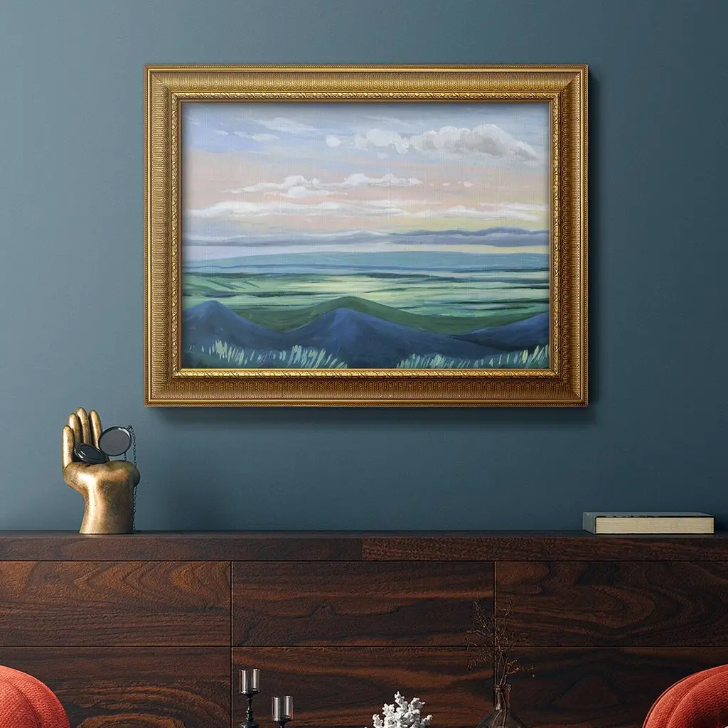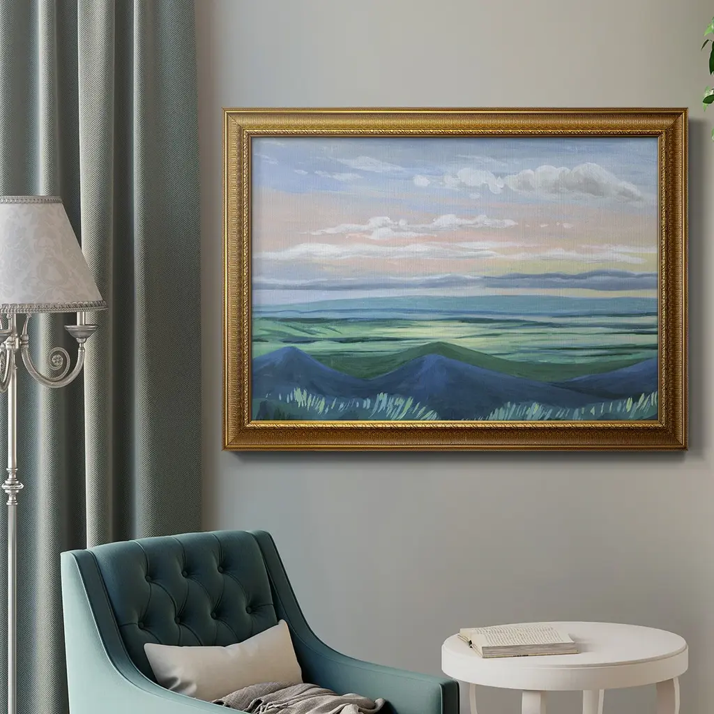 Sunset Outlook I Premium Framed Canvas- Ready to Hang A Premium Framed Canvas created to last. Framed in distressed wood and available in an array of sizes and colors Featuring a beveled a solid wood stretcher bar, each piece comes ready to hand 3 SIZES AVAILABLE 16''X20'' - Overall Size 18'X27'' - Overall Size 24''x36'' - Overall Size Each piece is made to order. Each piece comes with hanging hardware. Made in the USA Ready to Hang Giclee Paper Print Acrylic Glass Beveled Matt Board