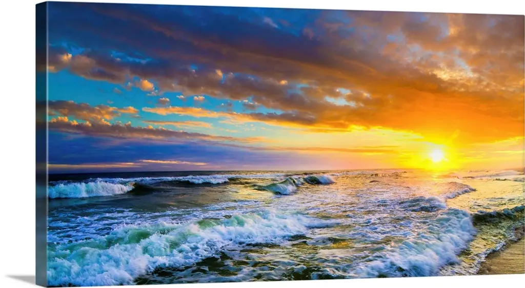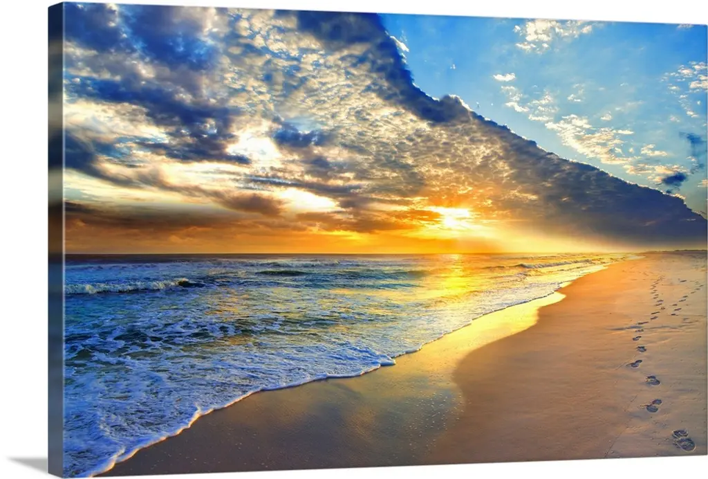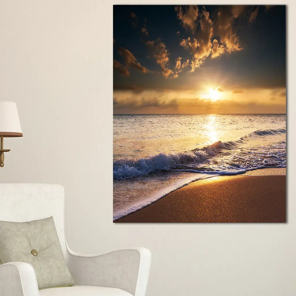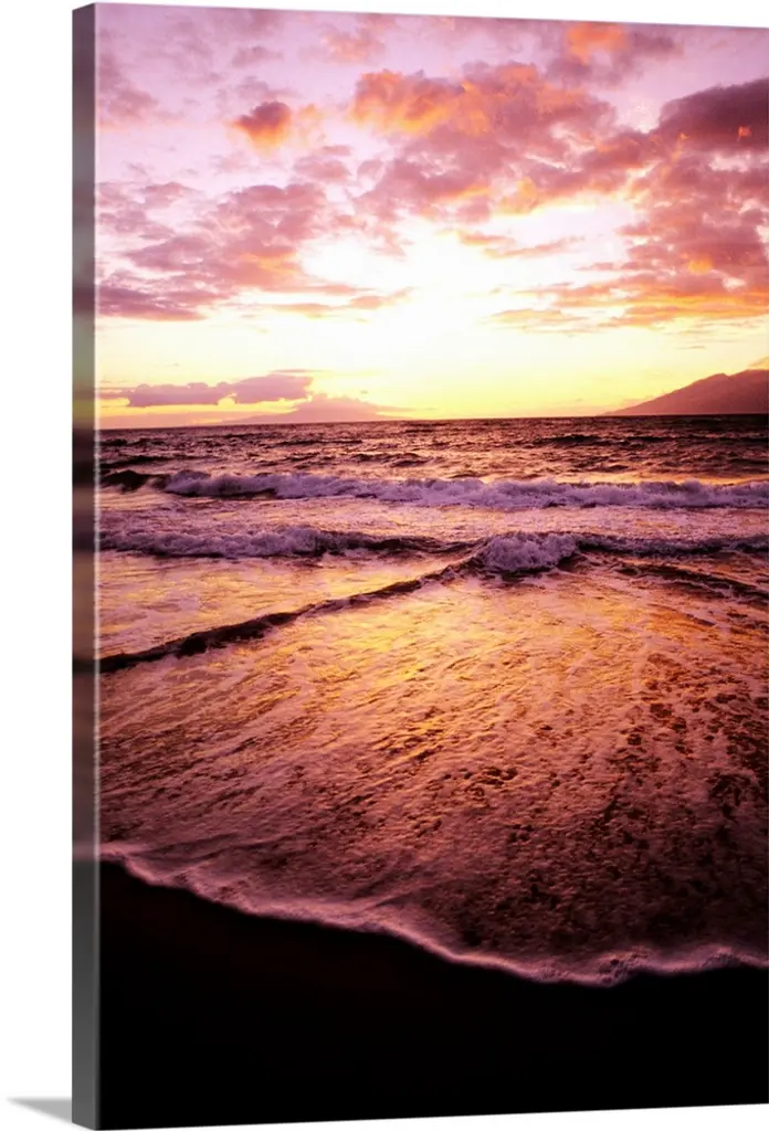The Sunset over Foaming Waves canvas art print is sure to make an impression on anyone who sees it. This artwork is gallery wrapped around a 1-inch solid wood frame and arrives carefully packaged and entirely ready to hang on the wall. Design Art only uses the highest resolution and pigments to ensure a crisp colorful print that is never faded or pixelated. This artwork is sure to be a conversation starter in any home or office.