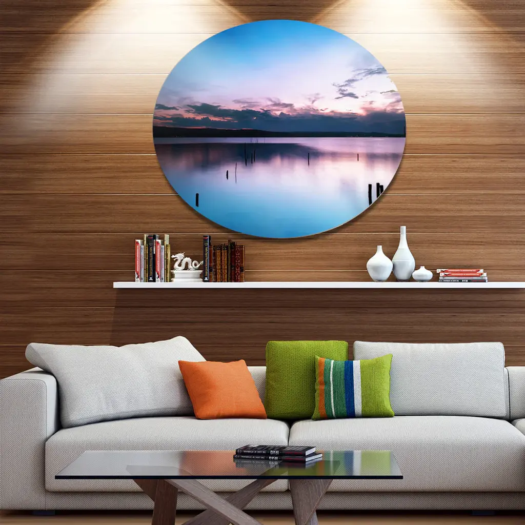 Sunset Over Lake Blue Everywhere, Seashore Disc Metal Artwork, 23"