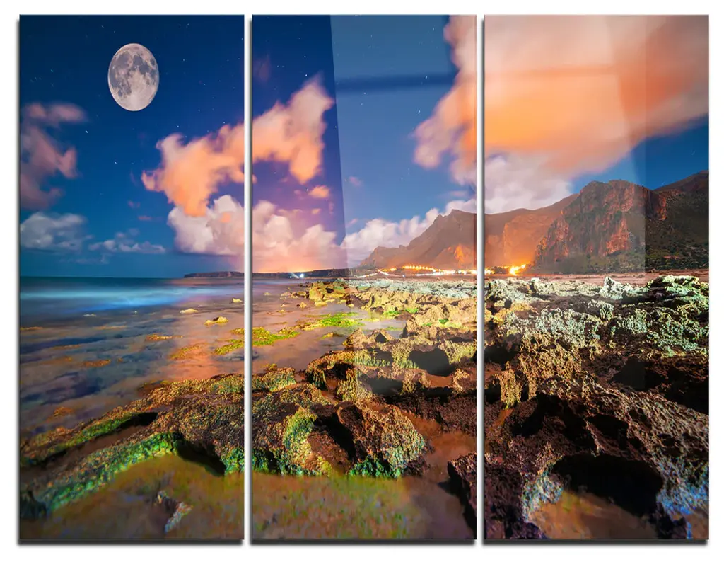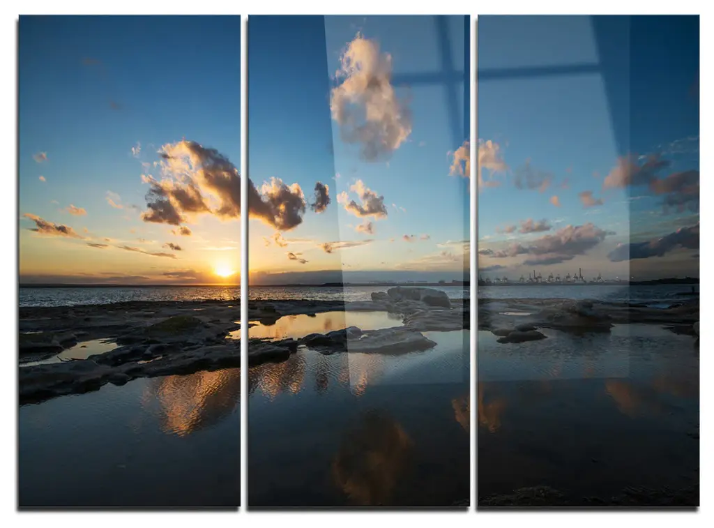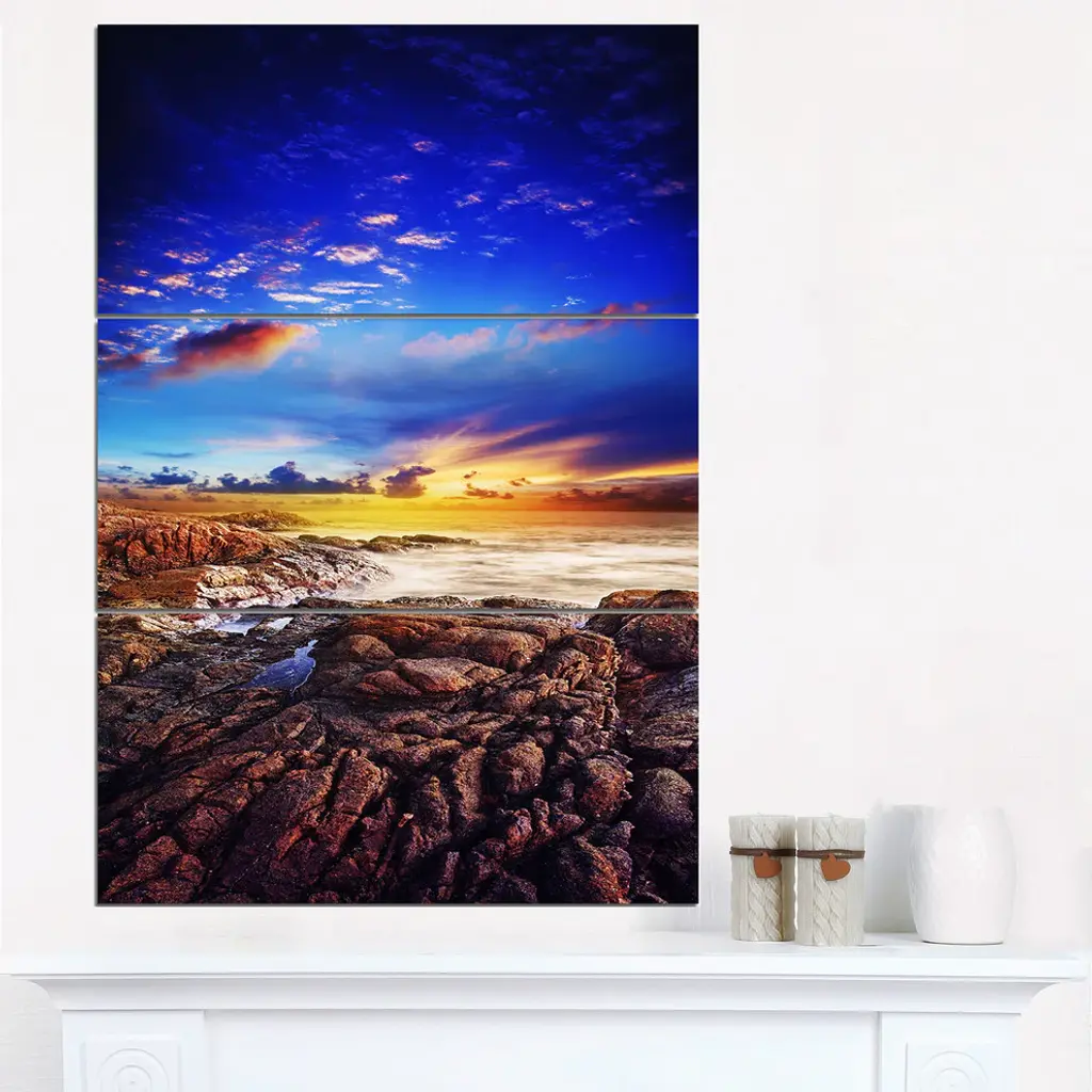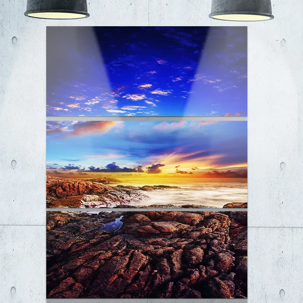 "Sunset Over The Ocean" Photography Metal Wall Art, 3 Panels, 28"x36"